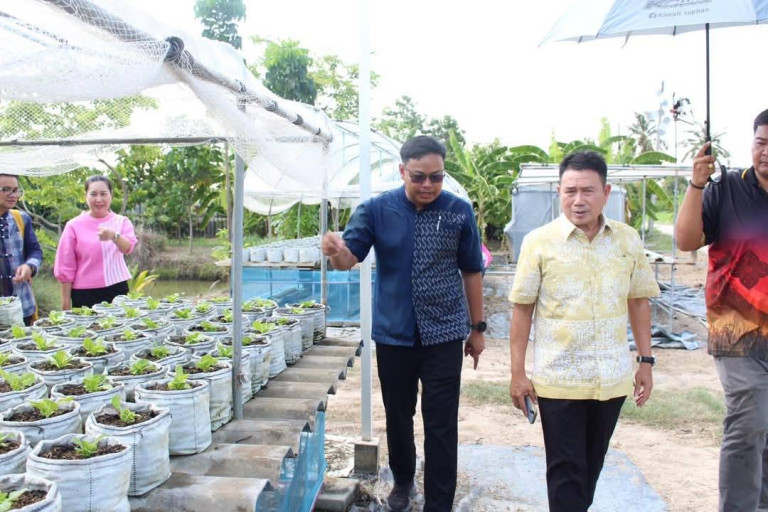 จากนั้น เวลา 14.00 น. ลงพื้นที่ ติดตามโครงการพัฒนาพื้นที่ต้นแบบการพัฒนาคุณภาพชีวิตตามหลักทฤษฎีใหม่ประยุกต์สู่ “โคก หนอง นา โมเดล” (งบเงินกู้) ปี 2564 พื้นที่แปลงนายสุนทร เนตรแสงจันทร์ หมู่ 2 ตำบลราษฎรพัฒนา อำเภอสามโก้ จังหวัดอ่างทอง มีขนาดพื้นที่ 1 ไร่ พร้อมเยี่ยมชมผลผลิตภายในแปลง อาทิ ไม้ยืนต้นเศรษฐกิจนานาชนิด มะละกอ ส้มโอ มะม่วง พยุง ยางนา เป็นต้น มีการปลูกผักออร์แกนิคปลอดสารพิษเพื่อบริโภคและจำหน่าย สร้างรายได้และเป็นศูนย์เรียนรู้ฯ ให้แก่ผู้สนใจทั่วไป