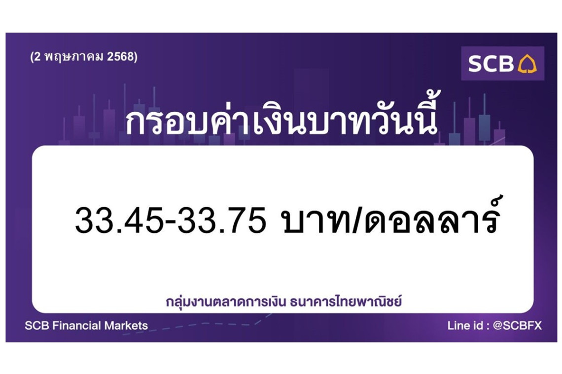 SCB คาดเงินบาทวันนี้เคลื่อนไหวในกรอบ 33.45–33.75 บาท/ดอลลาร์