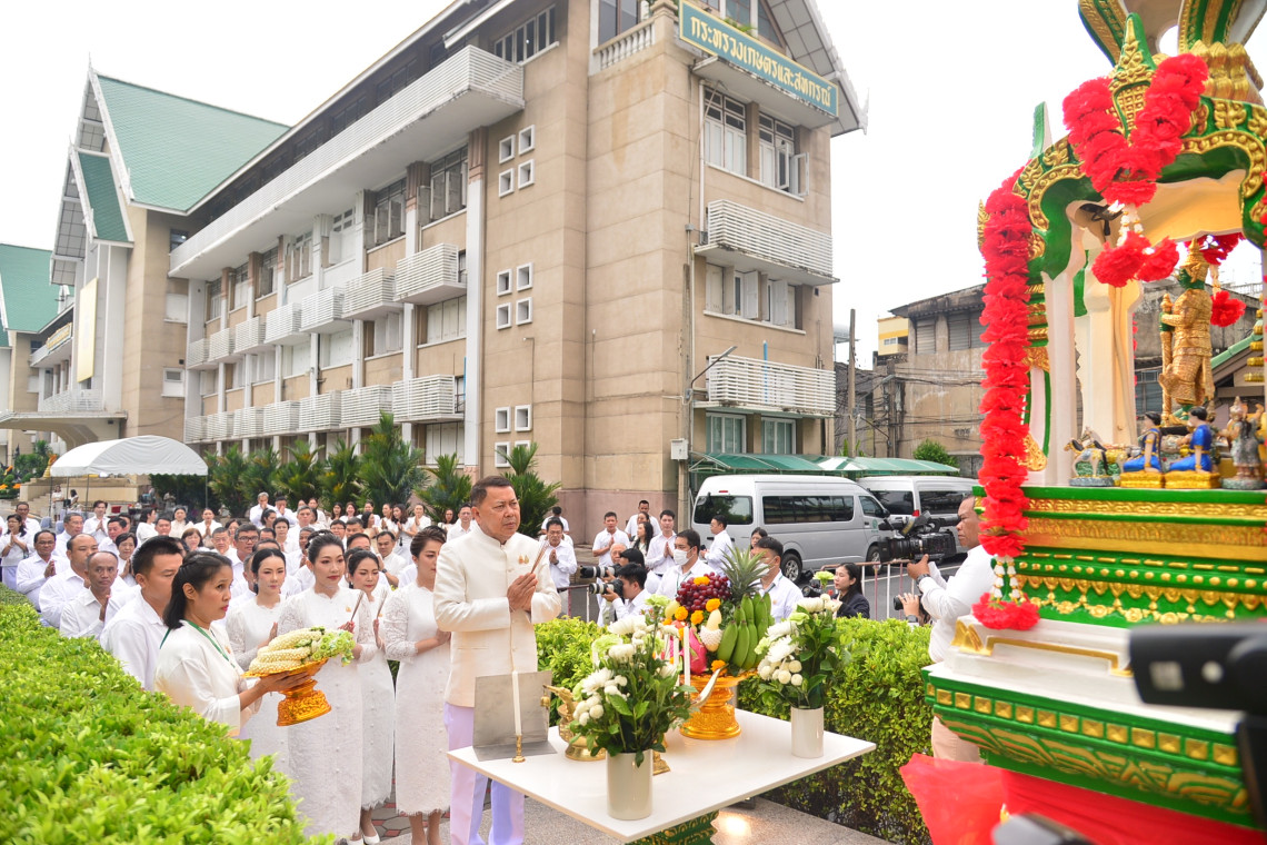 วันที่ 2 พฤษภาคม 2568 เวลา 07.00 น. นายประยูร อินสกุล ปลัดกระทรวงเกษตรและสหกรณ์ ในฐานะผู้ทำหน้าที่พระยาแรกนา ประจำปีพุทธศักราช 2568 เป็นประธานในพิธีบวงสรวงบูรพกษัตริย์ เทวดา องค์พระพิรุณทรงนาค และสิ่งศักดิ์สิทธิ์ประจำกระทรวงเกษตรและสหกรณ์ โดยมีเทพีคู่หาบทอง เทพีคู่หาบเงิน คู่เคียงพระยาแรกนา และผู้อัญเชิญเครื่องอิสริยยศ พร้อมด้วยผู้บริหารกระทรวงเกษตรและสหกรณ์ร่วมสักการะพระพุทธรูปประจำอาคาร 1 ชั้น 4 (ห้องพระพิรุณ) ศาลพระภูมิ ศาลท้าวเวสสุวรรณ ศาลตา-ยาย และองค์พระพิรุณทรงนาค (ห้องพิพิธภัณฑ์)