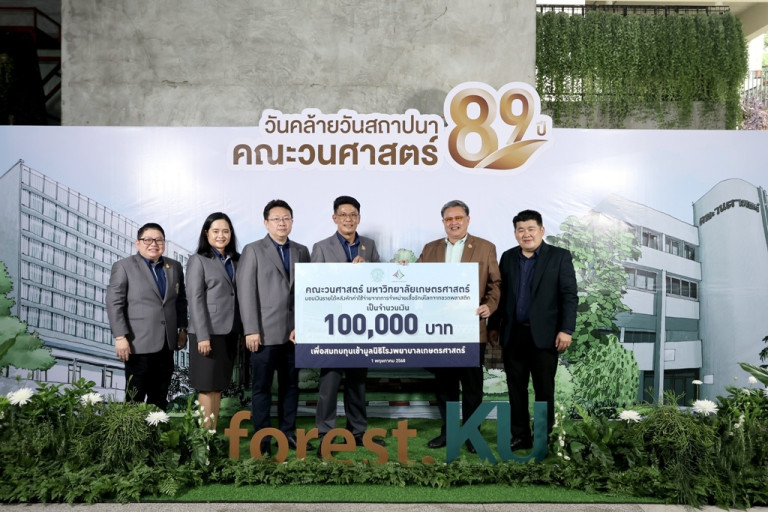 เนื่องในวันคล้ายวันสถาปนาคณะวนศาสตร์ ครบรอบ 89 ปี เมื่อวันที่ 1 พฤษภาคม 2568 ณ บริเวณโถงอเนกประสงค์ ตึกวนศาสตร์ 72 ปี มหาวิทยาลัยเกษตรศาสตร์ ดร.ดำรงค์ ศรีพระราม รักษาการแทนอธิการบดีมหาวิทยาลัยเกษตรศาสตร์ รับมอบเงินจำนวน 100,000 บาท จาก รศ.ดร.ประทีป ด้วงแค คณบดีคณะวนศาสตร์ เพื่อสมทบทุนเข้ามูลนิธิโรงพยาบาลเกษตรศาสตร์ โครงการอุทยานการแพทย์มหาวิทยาลัยเกษตรศาสตร์ ซึ่งเงินจำนวนดังกล่าวเป็นรายได้หลังหักค่าใช้จ่ายจากการจำหน่ายเสื้อรักษ์โลกจากขวดพลาสติก ในงานคืนสู่เหย้าศิษย์เก่าวนศาสตร์ ประจำปี 2568