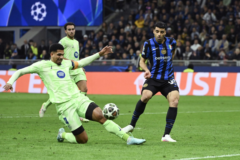 ที่สนาม จูเซ็ปเป้ เมอัซซ่า ประเทศอิตาลี ในการแข่งขันยูฟ่า แชมเปี้ยนส์ ลีก รอบรองชนะเลิศ เลกสอง คืนวันที่ 6 พ.ค.68 ระหว่างทีม "อินเตอร์ มิลาน" พบกับทีม "บาร์เซโลน่า" เริ่มเกมการแข่งขัน นาทีที่ 21 อินทเตอร์ ออกนำก่อน 1-0 จังหวะที่ ดิมาร์โก้ แย่งบอลจาก เดอ ยอง ก่อนสุดท้าย ดุมฟรีส์ หลุดไปจ่ายให้ เลาตาโร่ ยืนโล่ง ๆ แปเข้าไป