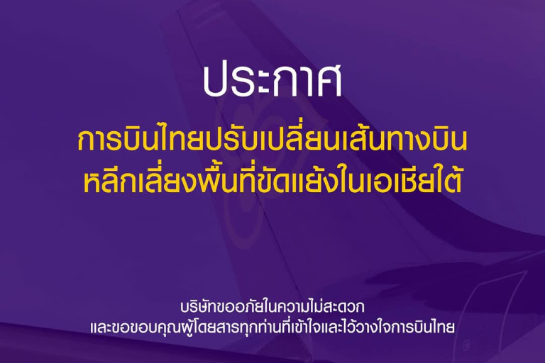 ตามที่ประเทศปากีสถานประกาศปิดน่านฟ้าและสนามบินภายในประเทศบางแห่ง จากกรณีความขัดแย้งในภูมิภาคเอเชียใต้ ส่งผลกระทบต่อเส้นทางบินของเที่ยวบินระหว่างประเทศที่ทำการบินผ่านน่านฟ้าประเทศปากีสถานตั้งแต่ช่วงนั้น เพื่อความปลอดภัยของผู้โดยสาร บริษัท การบินไทย จำกัด (มหาชน) ขอแจ้งให้ทราบว่าบริษัทมีความจำเป็นต้องเปลี่ยนแปลงเส้นทางบินของเที่ยวบินของบริษัทฯ ในเส้นทางบินยุโรปและเอเชียใต้ ตั้งแต่เวลา 05.00 น. ของวันพุธที่ 7 พฤษภาคม 2568 ส่งผลกระทบให้อาจเกิดความล่าช้าของเที่ยวบินบางเที่ยวบินในเส้นทางดังกล่าว