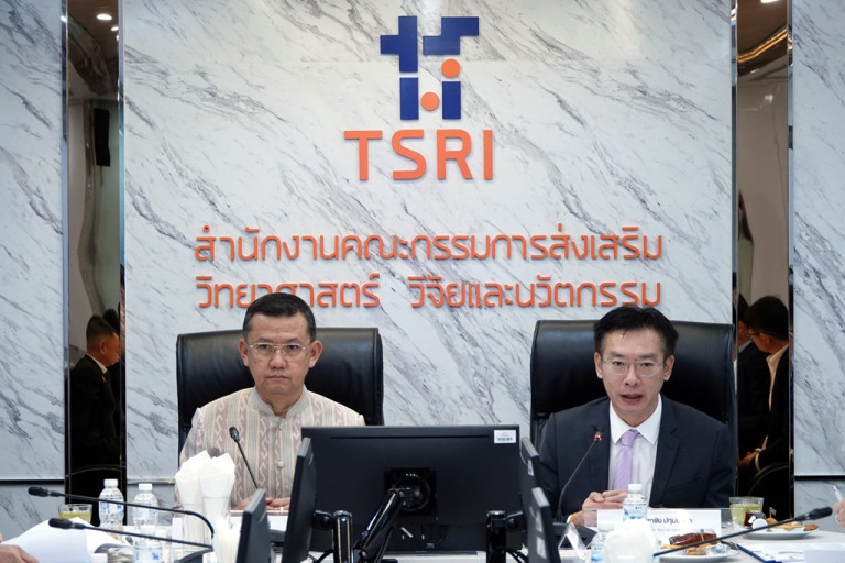 วันที่ 7 พ.ค.68 ศ.ดร.ศุภชัย ปทุมนากุล ปลัดกระทรวงการอุดมศึกษา วิทยาศาสตร์ วิจัยและนวัตกรรม และนายชยชัย แสงอินทร์ ผู้ตรวจราชการกระทรวงมหาดไทย เป็นประธานแถลงข่าว “การแก้ไขปัญหาน้ำมั่นคง น้ำแล้ง น้ำท่วมระดับพื้นที่ ภายใต้ความร่วมมือระหว่าง กระทรวงมหาดไทย กระทรวงการอุดมศึกษา วิทยาศาสตร์ วิจัยและนวัตกรรม (อว.) และสำนักงานคณะกรรมการส่งเสริมวิทยาศาสตร์ วิจัยและนวัตกรรม (สกสว.) พร้อมเป็นประธานการประชุมคณะทำงานการขับเคลื่อนการดำเนินการความร่วมมือแนวทางการแก้ไขปัญหาน้ำแล้งน้ำท่วมในระดับพื้นที่ ณ ห้องประชุม 1 ชั้น 14 สกสว.