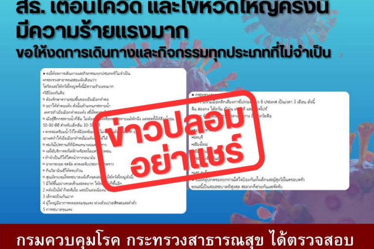 กรมควบคุมโรค กระทรวงสาธารณสุขได้ตรวจสอบข้อมูลแล้ว พบว่าเป็น ข้อมูลเท็จ