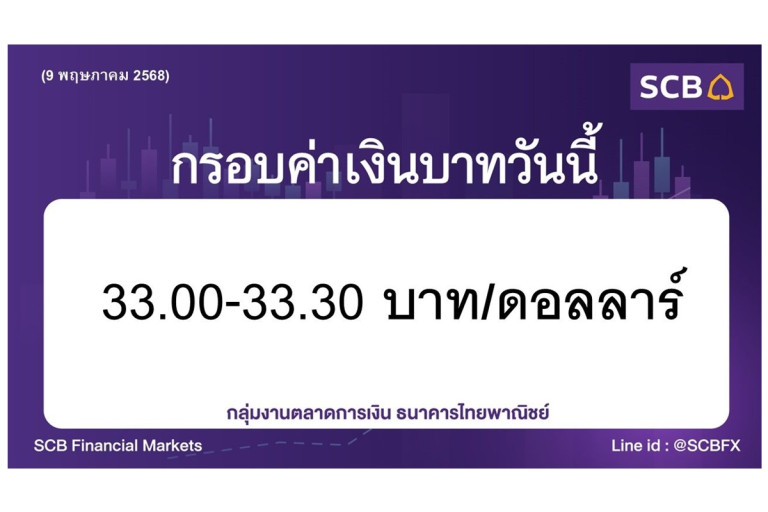 SCB คาดเงินบาทวันนี้เคลื่อนไหวในกรอบ 33.00–33.30 บาท/ดอลลาร์ รับแรงหนุนจากดอลลาร์อ่อนค่าและเงินหยวนแข็งค่า