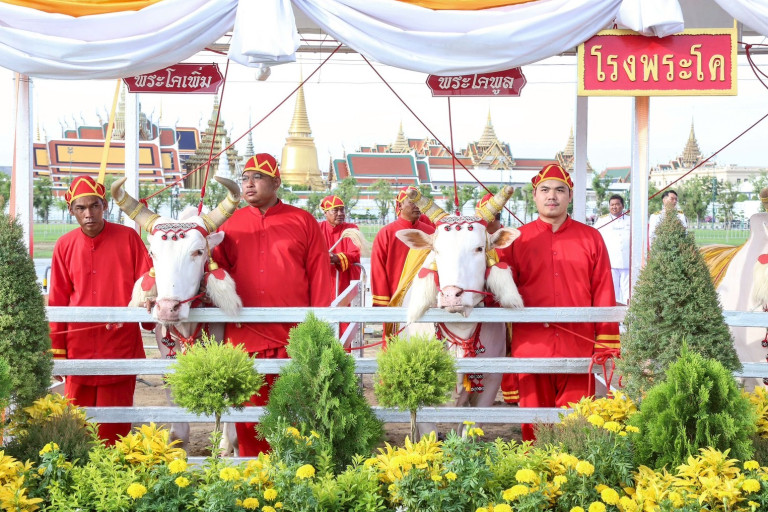 ผลเสี่ยงทายพระราชพิธีจรดพระนังคัลแรกนาขวัญ ประจำปี 2568 พระยาแรกนาหยิบได้ผ้า 5 คืบ พยากรณ์ว่าน้ำปีนี้มีปริมาณพอดี ข้าวกล้าในนาได้ผลบริบูรณ์ ส่วนพระโคกินน้ำ-หญ้า-เหล้า พยากรณ์น้ำท่าบริบูรณ์พอสมควร คมนาคมสะดวก ค้าขายกับต่างประเทศดีขึ้น
