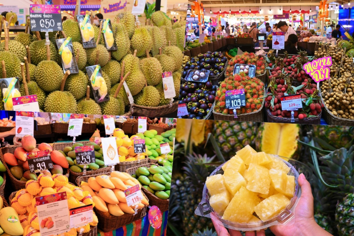 นอกจากนี้ยังมีผลไม้ตามฤดูกาลส่งตรงจากแหล่งเพาะปลูกคุณภาพ ได้รับการขึ้นทะเบียน GI รวมกว่า 23 ชนิด อาทิ มะพร้าวน้ำหอมบางคล้า จ.ฉะเชิงเทรา, ส้มโอขาวใหญ่สมุทรสงคราม จ.สมุทรสงคราม, สับปะรดภูแลเชียงราย จ.เชียงราย, เมล่อนพันธุ์อิบารากิ, แตงโมพันธุ์โอฮิซามะ, สับปะรดสยามโกลด์ และมะม่วงหลากหลายสายพันธุ์ เป็นต้น และยังมีเมนูอร่อยจากร้านดัง ไม่ว่าจะเป็น กาละแมทิพย์สมุย จ.สุราษฎร์ธานี, อาลัวทุเรียนหมอนทองแท้ จากร้านงามศิลป์ขนมไทย, พายลูกตาล และพายมะพร้าว ร้านวิจิตรา, ขนมเบื้อง ร้านขนมเบื้องหวานผึ้งน้อย อร่อยระดับมิชลิน 4 ปีซ้อน, กุ้งแช่น้ำปลา โกดังนัวส์ และน้ำแตงโมปั่นร้านเบ๊บ ฟรุ้ต เป็นต้น