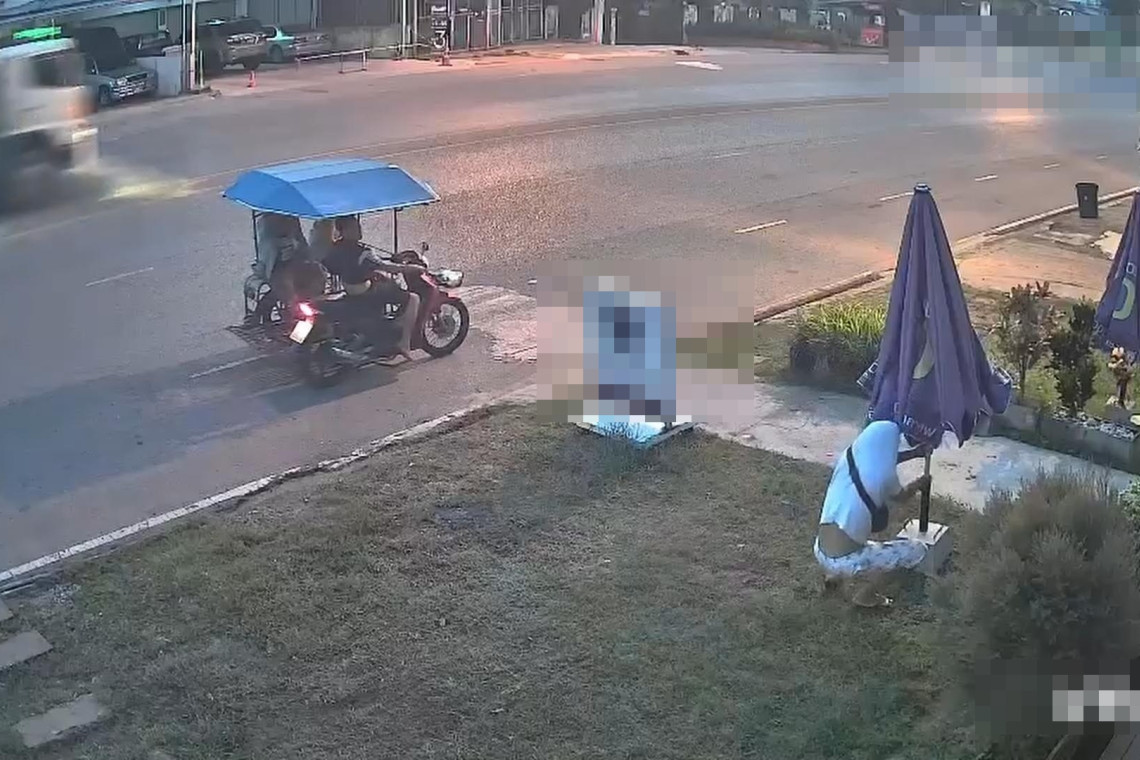 พ.ต.อ.ยศวัจน์ กล่าวว่า ภายหลังจากเจ้าหน้าที่ได้รับแจ้งเหตุชุดสืบสวนสภ.เมืองขอนแก่น ได้ตรวจสถานที่เกิดและตรวจสอบกล้องวงจรปิดบริเวณที่เกิดเหตุ ทั้งก่อน ขณะ และหลังเกิดเหตุ อย่างต่อเนื่องกันเรื่อยมา กระทั้งทราบว่าคนร้ายที่ลงมือก่อเหตุเป็นคนต่างด้าว จำนวน 3 คน เป็นชาย 2 คน หญิง 1 คน ในลักษะแบ่งหน้าที่กันที่ โดยชายที่สวมเสื้อดำทำหน้าที่ขับรถ ส่วนอีกสองคนสั่งซ้อนมาที่พ่วงข้าง เมื่อมาถึงที่เกิดเหตุ ชายที่สวมเสื้อสีขาวได้ลงมาลักเอาร่มของ พร้อมฐานเสียบจำนวน 1 ชุด