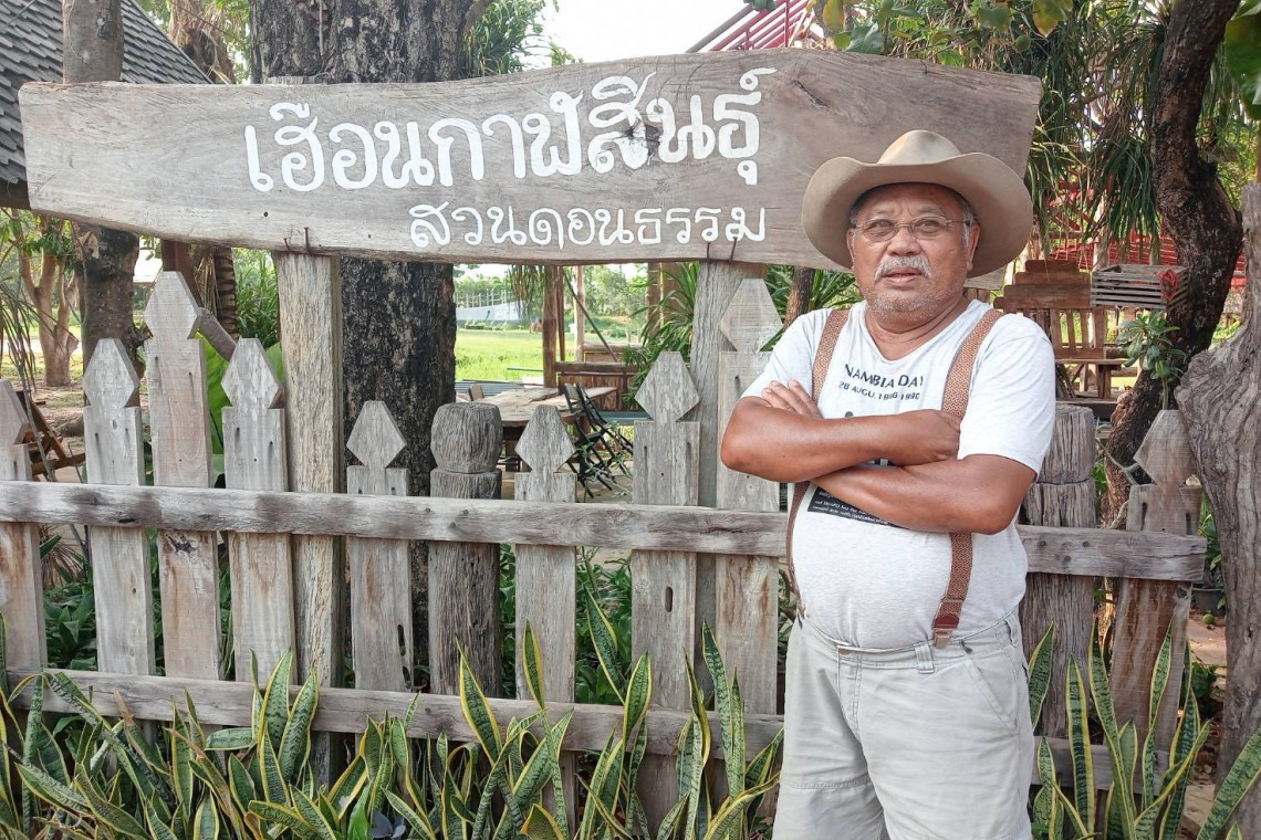 “ตนกับภรรยาน้องนำแนวพระราชดำริเศรษฐกิจพอเพียง พระบาทสมเด็จพระบรมชนกาธิเบศร มหาภูมิพลอดุลยเดชมหาราช บรมนาถบพิตร และพระราชเสาวนีย์ด้านสิ่งแวดล้อม สมเด็จพระนางเจ้าสิริกิติ์ พระบรมราชินีนาถ พระบรมราชชนนีพันปีหลวง มาประยุกต์ใช้ในพื้นที่ดังกล่าว จากเดิมมี 25 ไร่ ซื้อต่อจากชาวบ้านขยายพื้นที่เพิ่มเติม ปัจจุบันมีจำนวน 52 ไร่ จัดแบ่งเป็นโซนต่างๆ ทั้งพื้นที่ทำนา บ่อน้ำ โซนที่พัก โซนสวนอาหาร โซนพืชผักสวนครัว โซนหมู่บ้านอีสานดังกล่าว