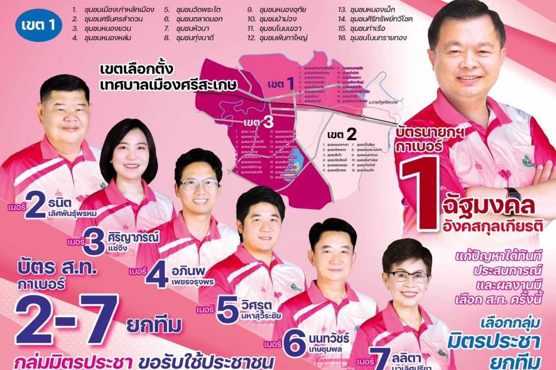 โค้งสุดท้าย เลือกนายกเล็กเมืองศรีสะเกษ "ดร.ฉัฐมงคล" แชมป์เก่า ไร้คู่แข่งที่สูสี คาดมายกทีม