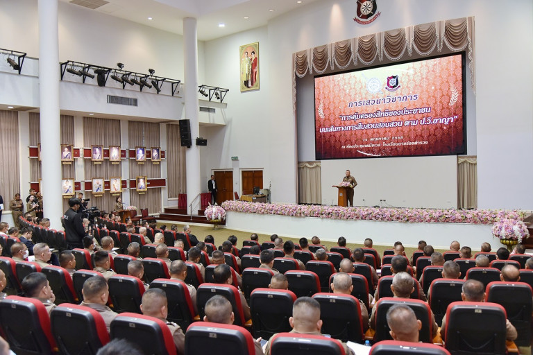 วันที่ 14 พฤษภาคม 2568 ที่ห้องเตมียเวส โรงเรียนนายร้อยตำรวจ พล.ต.อ.กิตติ์รัฐ พันธุ์เพ็ชร์ ผู้บัญชาการตำรวจแห่งชาติ เป็นประธานเปิดการเสวนาทางวิชาการ ในหัวข้อ “การคุ้มครองสิทธิของประชาชน บนเส้นทางการสืบสวนสอบสวนตามประมวลกฎหมายวิธีพิจารณาความอาญา (ป.วิ.อาญา)” โดยมีคณะผู้บังคับบัญชาระดับสูงของสำนักงานตำรวจแห่งชาติร่วมคณะ ประกอบด้วย พล.ต.อ.นิรันดร เหลื่อมศรี รอง ผบ.ตร. (รับผิดชอบงานกฎหมายและคดี), พล.ต.อ.อัคราเดช พิมลศรี ที่ปรึกษาพิเศษ ตร., พล.ต.ท.อิทธิพล อิทธิสารรณชัย และ พล.ต.ท.สมประสงค์ เย็นท้วม ผู้ช่วย ผบ.ตร.