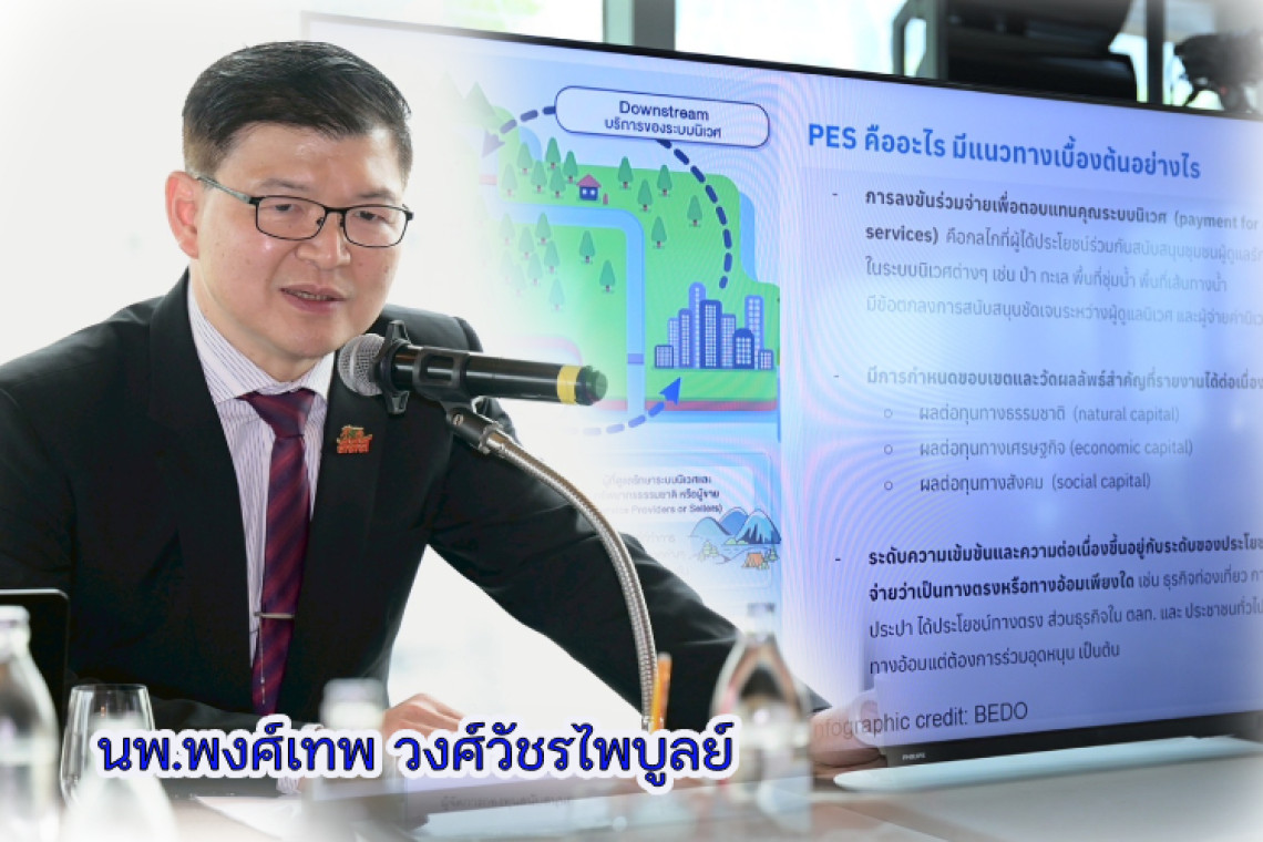 นพ.พงศ์เทพ วงศ์วัชรไพบูลย์ ผู้จัดการกองทุนสนับสนุนการสร้างเสริมสุขภาพ (สสส.) กล่าวในงาน PES Forum 2025 ความร่วมมือเพื่อความยั่งยืนของระบบนิเวศที่ให้ประโยชน์แก่ทุกคน เพื่อผลักดันแนวทางใหม่ในการสร้างสุขภาวะที่ดีจากทรัพยากรธรรมชาติ ว่า กองทุนสนับสนุนการสร้างเสริมสุขภาพ (สสส.) มีเป้าหมายการทำงานในระยะ 10 ปี พ.ศ. 2564-2573 เพื่อจัดการกับปัญหามลพิษทางสิ่งแวดล้อมที่กระทบต่อสุขภาพคนไทย ไม่เพียงแค่รับมือกับภัยคุกคามด้านสิ่งแวดล้อมที่เพิ่มขึ้น แต่รวมถึงการทำให้ชุมชนที่มีบทบาทสำคัญในการอนุรักษ์และใช้ประโยชน์จากทรัพยากรธรรมชาติ หรือได้รับผลประโยชน์ที่เหมาะสมตามมูลค่าของการให้บริการจากระบบนิเวศ จึงได้ร่วมมือกับสถาบันธรรมรัฐเพื่อการพัฒนาสังคมและสิ่งแวดล้อม (GSEI) จัดโครงการ Payment for Ecosystem Services (PES) ขึ้น เพื่อให้ชุมชนที่มีบทบาทสำคัญในการอนุรักษ์และใช้ประโยชน์จากทรัพยากรธรรมชาติ หรือได้รับผลประโยชน์ที่เหมาะสมตามมูลค่าของการให้บริการจากระบบนิเวศ การจัดการสิ่งแวดล้อมผ่านการมีส่วนร่วมของทุกภาคส่วน โดยเฉพาะการนำกลไกการจ่ายค่าตอบแทนบริการของระบบนิเวศ หรือ Payment for Ecosystem Services (PES) มาใช้ เป็นแนวทางที่จูงใจให้เกิดการดูแลและฟื้นฟูทรัพยากรธรรมชาติอย่างยั่งยืน โดย สสส. สนับสนุนให้มีการประเมินมูลค่าทางเศรษฐกิจของระบบนิเวศอย่างเป็นระบบ พร้อมผลักดันให้เกิดการลงทุนร่วมจากภาคส่วนต่าง ๆ ทั้งภาครัฐ ภาคเอกชน และชุมชน เพื่อนำไปสู่การสร้างรายได้ให้กับผู้ที่ดูแลสิ่งแวดล้อม