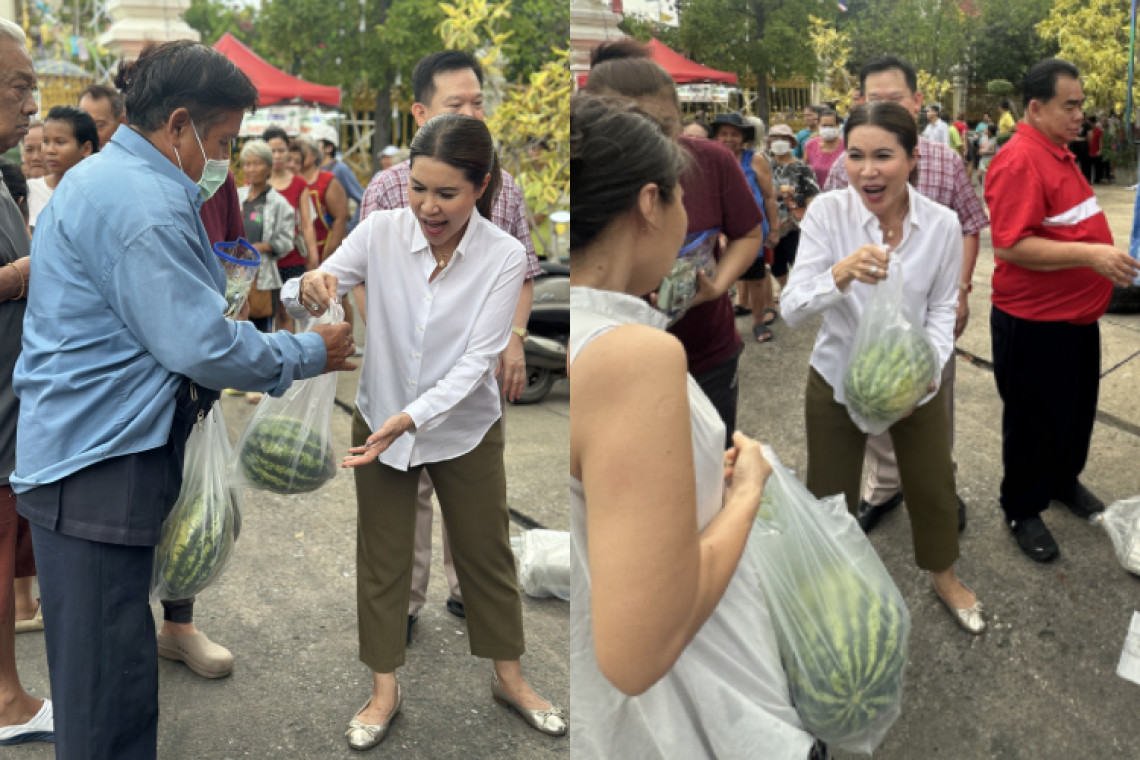 เมื่อวันอาทิตย์ที่ 11 พฤษภาคม 2568 วัดจันทร์ประดิษฐาราม เขตภาษีเจริญ กลายเป็นศูนย์รวมรอยยิ้มและความอิ่มใจ เมื่อ นางสุภาภรณ์ คงวุฒิปัญญา ผู้ช่วยรัฐมนตรีประจำสำนักนายกรัฐมนตรี และส.ก.กฤษฏ์ คงวุฒิปัญญา สมาชิกสภากรุงเทพมหานคร พรรคเพื่อไทย เขตภาษีเจริญ ร่วมทำโครงการช่วยเหลือเกษตรกรผู้ปลูกแตงโม โดยได้รับความเมตตาจากพระครูปลัดไชยวุฒิ อาภานนฺโท เจ้าอาวาสวัดจันทร์ฯ อนุญาตให้ใช้พื้นที่วัดเป็นจุดจำหน่ายแตงโมราคาย่อมเยาโดยไม่คิดค่าใช้จ่าย