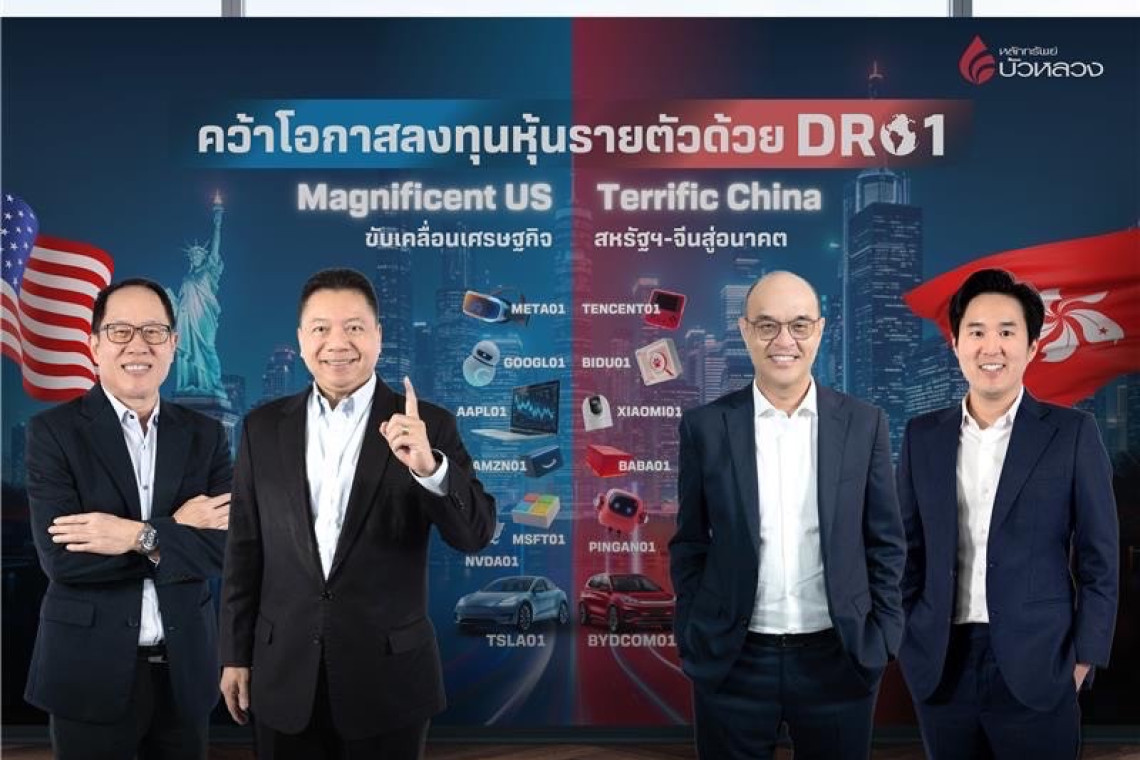 หลักทรัพย์บัวหลวง เดินหน้ายกระดับโอกาสการลงทุนของนักลงทุนไทย สู่หุ้นเมกะเทรนด์ชั้นนำระดับโลกจากสหรัฐฯ และฮ่องกง ผ่าน DR อ้างอิงหุ้นรายตัวชุดใหม่ 13 หลักทรัพย์ ตอบโจทย์ผู้ที่กำลังมองหาโอกาสการลงทุนในกลุ่ม “Magnificent 7” ของสหรัฐฯ และกลุ่ม “Terrific China” บริษัทสัญชาติจีนที่จดทะเบียนในตลาดหุ้นฮ่องกง โดย TSLA01, AMZN01, GOOGL01, META01, MSFT01, NVDA01, AAPL01, BYDCOM01, BABA01, BIDU01, PINGAN01, XIAOMI01 เริ่มซื้อขายในตลาดหลักทรัพย์แห่งประเทศไทยวันที่ 15 พ.ค.68 ขณะที่ TENCENT01 เริ่มซื้อขายในวันที่ 19 พ.ค.68