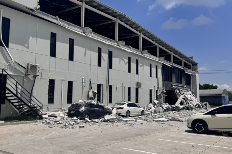 วันที่ 16 พฤษภาคม 2568 นายธนวัฒน์ ปัญญาสกุลวงศ์ กรรมการการนิคมอุตสาหกรรมแห่งประเทศไทย (กนอ.) รักษาการในตำแหน่งผู้ว่าการ กนอ. กล่าวว่า ตามที่ได้เกิดเหตุผนังอาคารของบริษัท คอสโม แมนูแฟคเจอริ่ง (ประเทศไทย) จำกัด อาคาร BG93 ในพื้นที่นิคมอุตสาหกรรมอมตะซิตี้ ชลบุรี เมื่อเวลาประมาณ 11.10 น. วันนี้ (16 พ.ค.68) นั้น เบื้องต้นได้รับรายงานจากเจ้าหน้าที่นิคมอุตสาหกรรมอมตะซิตี้ ชลบุรี พบว่าเหตุการณ์ดังกล่าวส่งผลให้มีผู้ได้รับบาดเจ็บเล็กน้อยบริเวณหัวไหล่จำนวน 1 ราย และมีรถยนต์ที่จอดอยู่บริเวณใกล้เคียงได้รับความเสียหายจำนวน 7 คัน โดยยืนยันว่าไม่มีผู้เสียชีวิตจากเหตุการณ์ในครั้งนี้แต่อย่างใด