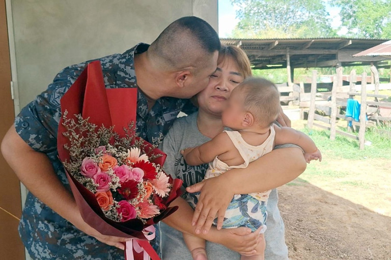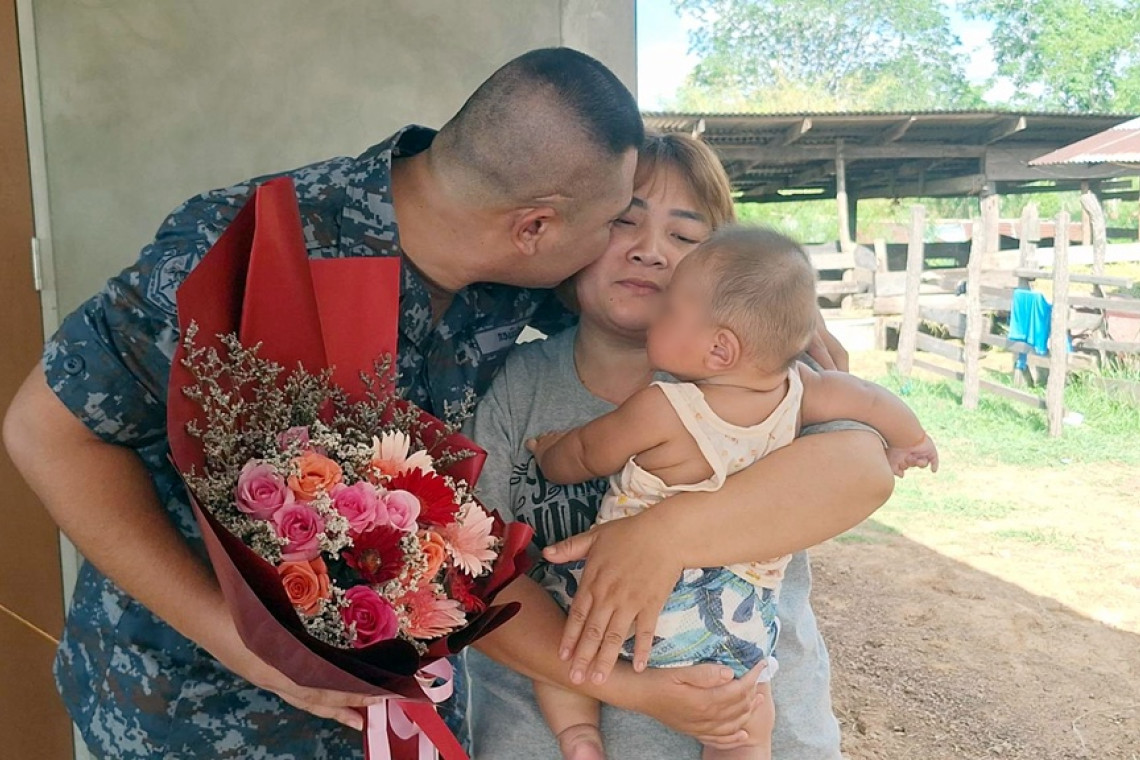 จากนั้น นาวาอากาศเอกรักพงศ์ เถื่อนนาดี เสนาธิการกองบิน 23 ได้มอบแพรมเพิร์ส นมให้กับน้องอะตอม ลูกชายวัย 5 เดือนของพลทหารเบส พร้อมกับให้กำลังใจ บอกว่า ภรรยาคิดถึงก็สามารถไปเยี่ยมที่กองบิน 23 ได้ โดยตอนนี้ให้พลทหารเบสได้ลาพักผ่อนกับภรรยา 7 วันจากนั้นก็กลับเข้าทำงานที่กองบิน 23 ต่อไป ให้ความอบอุ่นใจได้