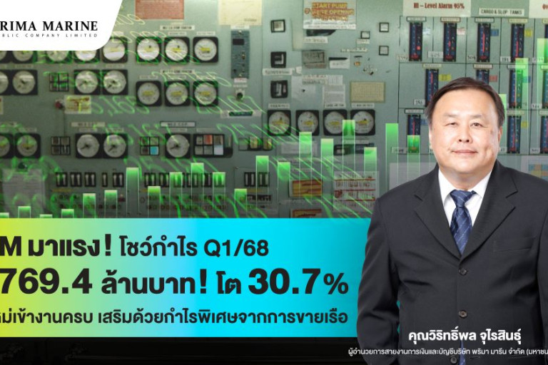 วันที่ 16 พฤษภาคม 2568 นายวิริทธิ์พล จุไรสินธุ์ ผู้อำนวยการฝ่ายการเงินและบัญชี บริษัท พริมา มารีน จำกัด (มหาชน) หรือ PRM ผู้ให้บริการขนส่งและจัดเก็บน้ำมันดิบ ผลิตภัณฑ์น้ำมันสำเร็จรูปและเคมีเหลวทางเรือ รวมถึงให้บริการสนับสนุนงานสำรวจและผลิตปิโตรเลียมทางทะเลอย่างครบวงจร เปิดเผยว่า การเติบโตของกำไรสุทธิของบริษัทฯ ถึง 30.7% เป็นผลมาจากการดำเนินงานที่เป็นไปตามแผนในทุกธุรกิจ กองเรือใหม่ทั้ง 4 ลำ ในธุรกิจ OSV เข้าทำงานครบตามแผนงาน รวมถึงได้กำไรจากการขายเรือ Floating Storage Unit (FSU) ที่ครบอายุการใช้งานจำนวน 1 ลำ ช่วยหนุนการเติบโตของกำไรสุทธิอีกทาง โดยในไตรมาส 1/2568 บริษัทฯ มีภาพรวมผลประกอบการและการดำเนินงานดังนี้