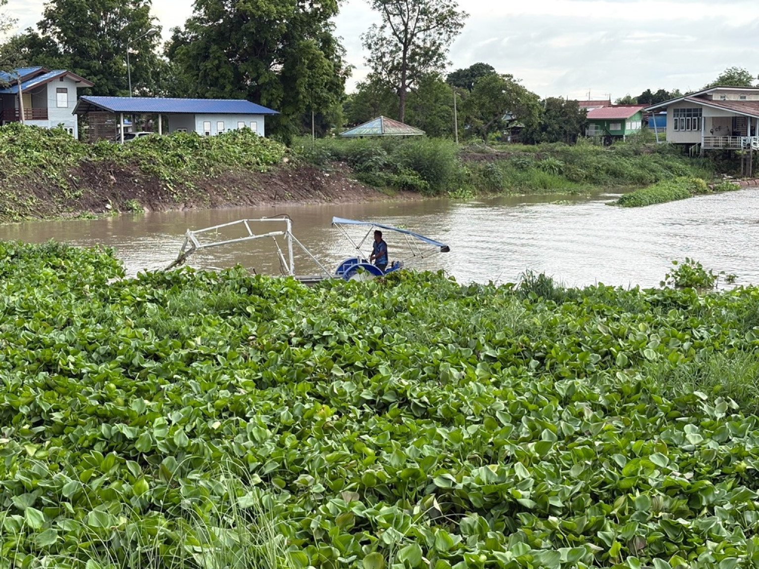วันที่ 16 พ.ค.68 นายศุภชัย มะพล ผู้อำนวยการโครงการส่งน้ำและบำรุงรักษาผักไห่ ได้มอบหมายให้นายทิวา ร้อยกรอง หัวหน้าฝ่ายช่างกล นำเจ้าหน้าที่เข้าดำเนินการกำจัดวัชพืชและสิ่งกีดขวางทางน้ำบริเวณด้านหน้าประตูระบายน้ำ (ปตร.) ผักไห่ ตำบลบ้านใหญ่ อำเภอผักไห่ จังหวัดพระนครศรีอยุธยา