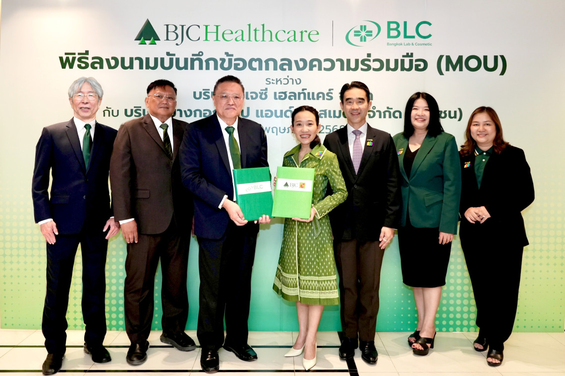 (“BJC Healthcare”) โดย นางฐาปณี เตชะเจริญวิกุล ประธานเจ้าหน้าที่บริหารและกรรมการผู้จัดการใหญ่ บริษัท เบอร์ลี่ ยุคเกอร์ จำกัด (มหาชน) พร้อมกับ ภญ. ปาณิสรา ไชยรุ่งรัตน์ รองผู้จัดการใหญ่ฝ่ายสินค้าและบริการธุรกิจเวชภัณฑ์ และบริษัท บางกอกแล็ป แอนด์ คอสเมติค จำกัด (มหาชน) (“BLC”) โดย ภก. สุวิทย์ งามภูพันธ์ ประธานเจ้าหน้าที่บริหาร และ ภก.สมชัย พิสพหุธาร ประธานเจ้าหน้าที่สายบัญชี และการเงิน ร่วมลงนามความร่วมมือ เพื่อจัดตั้งบริษัทร่วมทุน (Joint Venture) พัฒนานวัตกรรมในกลุ่มเวชภัณฑ์ยาและผลิตภัณฑ์เพื่อสุขภาพ ภายใต้แบรนด์ BJC Healthcare โดยมีเป้าหมายในการยกระดับคุณภาพชีวิตของผู้ป่วยและประชาชน พร้อมผลักดันการดูแลสุขภาพที่เข้าถึงได้อย่างยั่งยืน มุ่งสู่การเป็นผู้นำในอุตสาหกรรมยาและสุขภาพในภูมิภาคเอเชีย โดยมีผู้บริหารระดับสูงจากทั้งสององค์กรร่วมเป็นสักขีพยาน ณ อาคารบีเจซีเฮ้าส์ สำนักงานใหญ่ เมื่อวันที่ 16 พฤษภาคม 2568