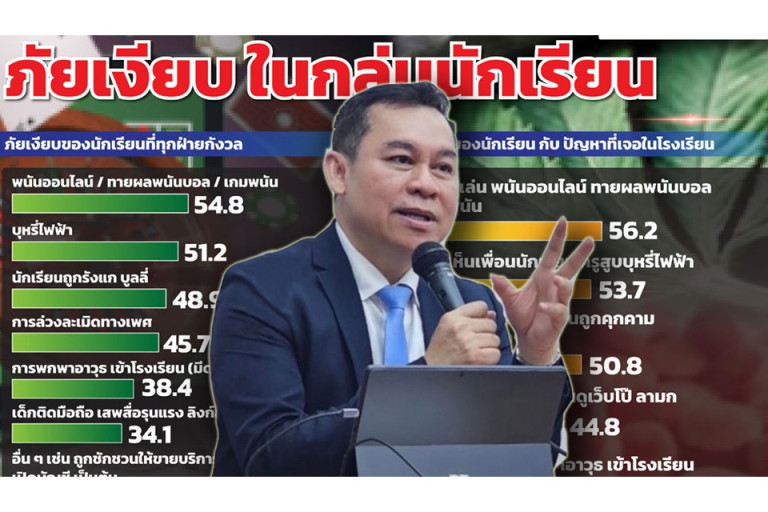 เมื่อวันที่ 18 พ.ฤษภาคม 2568 ผู้ช่วยศาสตราจารย์ ดร.นพดล กรรณิกา ผู้อำนวยการสำนักวิจัยซูเปอร์โพล เปิดเผยผลสำรวจเรื่อง “ภัยเงียบในกลุ่มนักเรียน” ที่จัดทำขึ้นระหว่างวันที่ 14 - 17 พฤษภาคม 2568 โดยใช้ทั้งวิธีวิจัยเชิงปริมาณและคุณภาพจากกลุ่มตัวอย่างประชาชนจำนวน 1,525 ราย แบ่งเป็นนักเรียนมัธยมศึกษา 625 คน ผู้ปกครอง 525 คนและคณะครูและผู้บริหารโรงเรียน จำนวน 375 คน พบว่า "พนันออนไลน์" คือภัยเงียบอันดับหนึ่งที่ทุกกลุ่มกังวลมากที่สุด ด้วยร้อยละ 54.8% สะท้อนว่าการเข้าถึงแพลตฟอร์มการพนันในหมู่นักเรียนไม่ใช่เรื่องใหม่ แต่เป็น “พฤติกรรมซ้ำซ้อน” ที่ฝังอยู่ในชีวิตประจำวันของเด็กจำนวนมาก การเปลี่ยนมือถือให้เป็น “โต๊ะพนันในมือ” ได้ตลอด 24 ชั่วโมง คือสัญญาณอันตรายว่าโรงเรียนกำลังถูกแทรกแซงด้วยอุตสาหกรรมพนันที่เจาะเข้าถึงเยาวชนโดยตรง