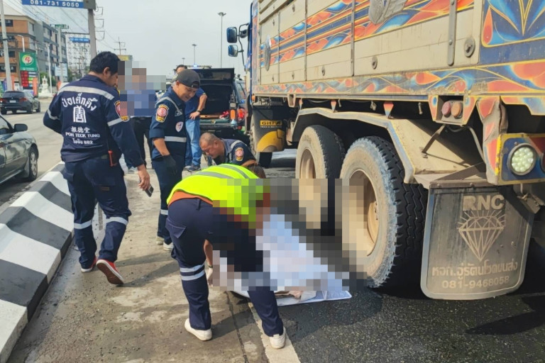 วันที่ 19 พ.ค.68 อเวลา 08.30 น.ร.ต.ท.อนุสรณ์ เวียงสิมา ร้อยเวรสอบสวนสภ.คลองหลวงได้รับแจ้งมีอุบัติเหตุรถสิบล้อพ่วงชนรถจักรยานยนต์ทำให้คนขับรถจักรยานยนต์เสียชีวิตบริเวณถนนพหลโยธินขาเข้าช่วงทางด่วนกม.45+600 ต.คลองหนึ่ง อ.คลองหลวง จ.ปทุมธานี จึงไปที่เกิดเหตุพร้อมด้วยแพทย์นิติเวชโรงพยาบาลธรรมศาสตร์ เฉลิมพระเกียรติ และเจ้าหน้าที่ตำรวจจราจรสภ.คลองหลวง เจ้าหน้าที่มูลนิธิปอเต็กตึ้ง