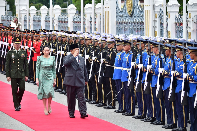 เมื่อเวลา 10.05 น. วันที่ 19 พ.ค. 68 ที่ บริเวณสนามหญ้าหน้าตึกไทยคู่ฟ้า ทำเนียบรัฐบาล นางสาวแพทองธาร ชินวัตร นายกรัฐมนตรี ให้การต้อนรับ นายปราโบโว ซูบียันโต (H.E. Mr. Prabowo Subianto) ประธานาธิบดีแห่งสาธารณรัฐอินโดนีเซีย ในโอกาสการเยือนประเทศไทยอย่างเป็นทางการในฐานะแขกของรัฐบาล