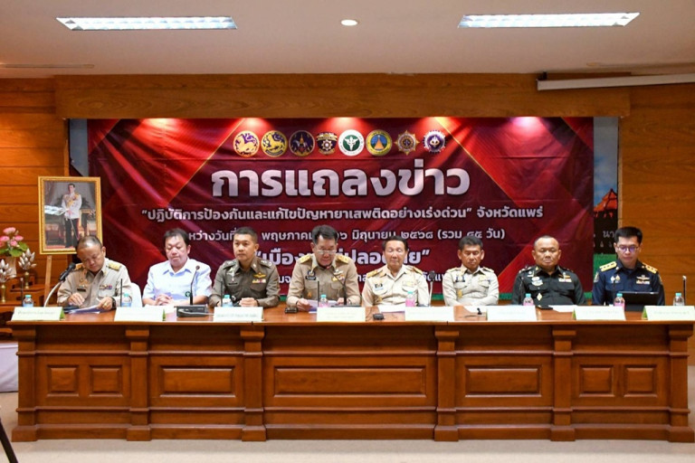 แพร่แถลงเปิดปฏิบัติการป้องกันและแก้ไขปัญหายาเสพติดอย่างเร่งด่วนและเข้มข้น 45 วัน “เมืองแพร่ปลอดภัย” เร่ง Re X-ray