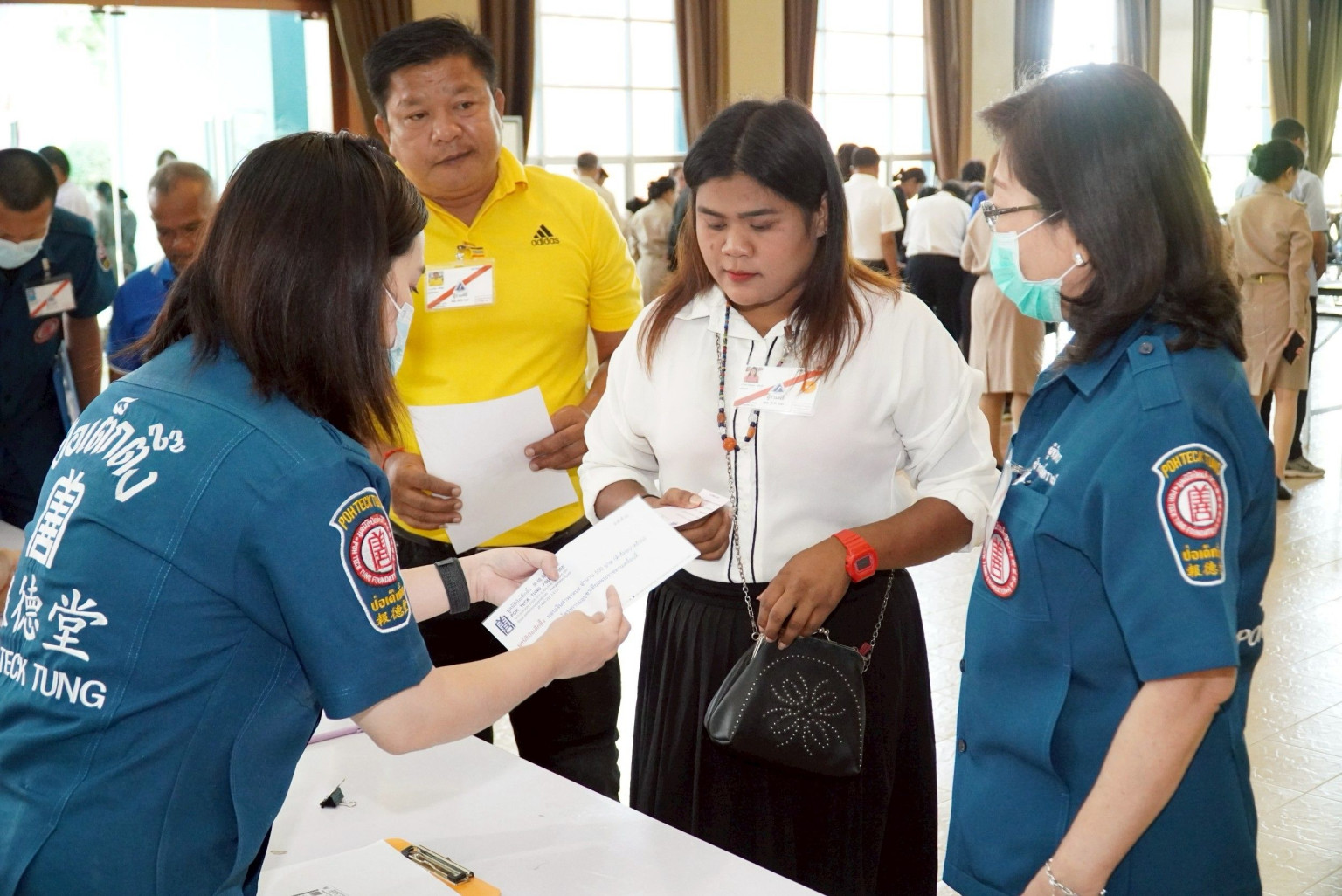 มูลนิธิป่อเต็กตึ๊ง สนับสนุนค่าพาหนะ และเครื่องอุปโภคบริโภค ให้แก่ผู้รับขาเทียม ช่างและอาสาสมัคร ในโครงการออกหน่วยทำขาเทียมพระราชทานเคลื่อนที่ ครั้งที่ 174 จังหวัดสุราษฎร์ธานี