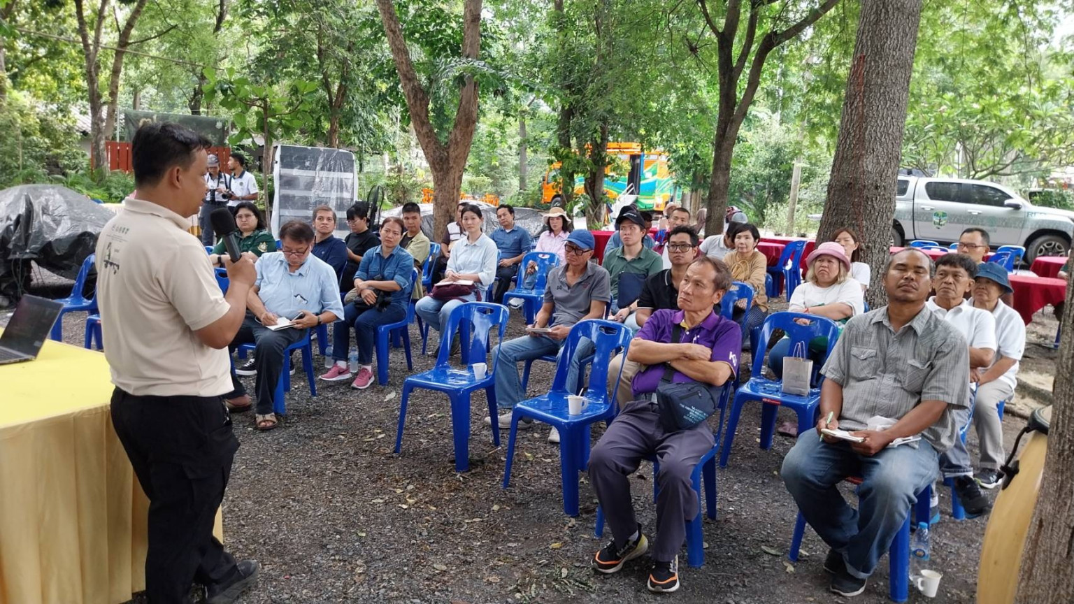 นายอนันต์ ปิ่นน้อย ผู้อำนวยการสำนักส่งเสริมการปลูกป่า กรมป่าไม้ กล่าวว่าโครงการศูนย์พัฒนาอาชีพเพาะชำกล้าไม้ หรือโรงเรียนกล้าไม้ ในครั้งนี้สามารถนำไปประกอบอาชีพหรือทำให้ต้นไม้เรามีคุณภาพของการปลูกในพื้นที่ต่อไป ส่วนการเพาะชำกล้าเม็ดในลักษณะที่ดีเป็นความรู้ทางวิชาการซึ่งกรมป่าไม้ได้คัดเลือกวิทยากรที่มีความรู้ความสามารถมาแนะนำการเพาะชำที่ถูกต้องซึ่งในการผลิตกล้าไม้ที่ดีมีคุณภาพสามารถเติบโตเร็วโดยการแนะนำการปลูกในแต่ละภาคควรใช้กล้าไม้ชนิดใด สำหรับประชาชนที่สนใจเข้าไปดูในเว็บไซต์ของกรมป่าไม้ที่จะแนะนำและการรับสมัครทั่วประเทศเข้ามารับการอบรม ซึ่งโรงเรียนกล้าไม้ยังต้องการบุคลากรอีกเยอะเนื่องจากเรามีโรงเรียนกล้าไม้และครูกล้าไม้โดยครูกล้าไม้เราจะอบรมเฉพาะเยาวชนจากโรงเรียนเสริมไปไหนการเรียนการสอนในโรงเรียน ในส่วนของผู้ที่มารับการอบรมในครั้งนี้จะมาจากหลากหลายอาชีพที่สมัครเข้ามาทั้งที่เป็นอาชีพเกษตรกรและอาชีพราชการที่ให้ความสนใจเข้ามาอบรมในครั้งนี้