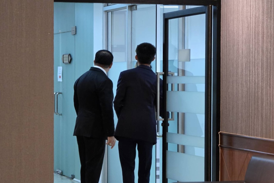 ก่อนที่จะเดินไปหยุดที่บริเวณหน้าห้องทำงานชั้น 1 ของนายประเสริฐ จันทรรวงทอง รองนายกรัฐมนตรีและรัฐมนตรีว่าการกระทรวงดิจิทัลเพื่อเศรษฐกิจและสังคม โดยถามเจ้าหน้าที่ว่า นายประเสริฐ อยู่ที่ห้องทำงานหรือไม่ ก่อนที่จะเดินทางกลับโดยใช้ทางออกด้านหลังในทันที