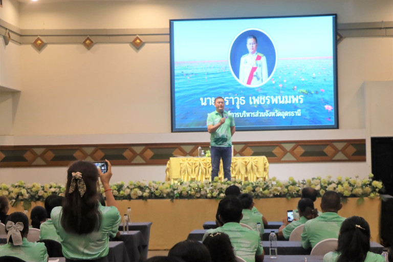 วันที่ 22 พ.ค. 2568 เวลา 14.00 น.นายศราวุธ เพชรพนมพร นายก อบจ.อุดรธานี ให้เกียรติเป็นประธานในพิธีเปิดโครงการฝึกอบรมสร้างจิตสำนึกแก่เครือข่ายอาสาสมัครพิทักษ์ทรัพยากรธรรมชาติและสิ่งแวดล้อมหมู่บ้าน (ทสม.) จ.อุดรธานี ณ ห้องฟ้าหลวง 1โรงแรมนภาลัย อ.เมือง จ.อุดรธานี โดยมี นายสุวิทย์ ฉัตรประเสริฐ เลขานุการนายก อบจ.อุดรธานี ดร.ภาคภูมิ ปุผมาศ ส.อบจ.อุดรธานี อ.เมือง เขต 11 /ประธานเครือข่าย ทสม.อุดรธานี (ผู้กล่าวรายงาน) หน.สป.อบจ.อุดรธานี ผอ.กองสาธารณสุข อบจ.อุดรธานี เลขานุการ อบจ.อุดรธานี เครือข่ายอาสาสมัครพิทักษ์ทรัพยากรธรรมชาติและสิ่งแวดล้อมหมู่บ้าน (ทสม.) จ.อุดรธานีเข้าร่วมรับฟังการอบรมกว่า 100 คน จากกลุ่มเป้าหมายในพื้นที่ต่าง ๆ ของจังหวัด