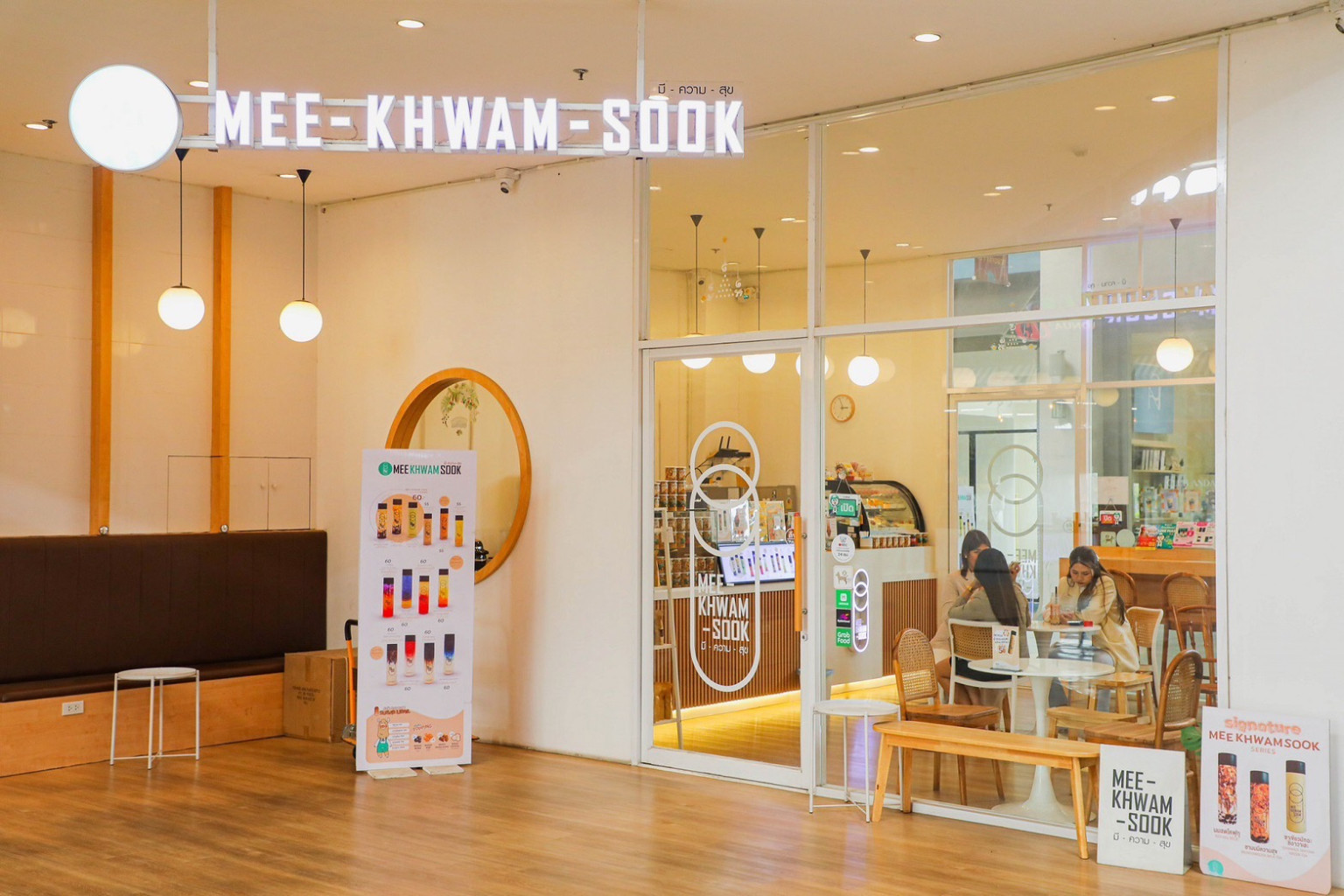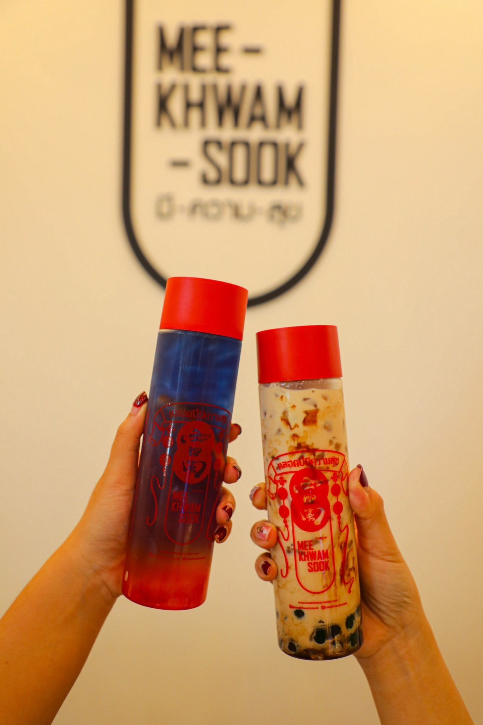 ประเดิมกันที่ร้านแรก MEE-KHWAM-SOOK ชานมไข่มุกไต้หวัน ชาเขียว ชาผลไม้ต่าง ๆ รวมถึงเมนูที่หลากหลายที่สามารถเลือกระดับความหวานได้ หรือจะใส่ไข่มุกป๊อป ไข่มุกคริสตัล เปิดให้บริการตั้งแต่เวลา 10.00 น.– 20.00 น.