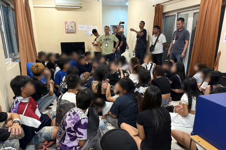เมื่อเวลา 03.06 วันที่ 22 พ.ค.68 พ.ต.อ.ภาสกรณ์ ไพจิตต์ ผกก.สส.ภ.จว.ชลบุรี พ.ต.ท.นพรุจ จิตมั่น รองผกก.สส.ภ.จว.ชลบุรี พ.ต.ท.พีระวัฒน์ วงศ์ทอง สว.กก.สส.ภ.จว.ชลบุรี ร.ต.อ.ศรศักดิ์ ปิ่นทอง รองสว.กก.สส.ภ.จว.ชลบุรี พร้อมด้วยกำลังเจ้าหน้าที่ตำรวจชุดสืบสวนจังหวัดชลบุรี เจ้าหน้าที่ตำรวจ สภ.บางละมุง นำกำลังบุกเข้าจับกุม ปาร์ตี้วันเกิด ภายในบ้านพูลวิลล่าแห่งหนึ่ง ตั้งอยู่ ม.1 ต.หนองปลาไหล อ.บางละมุง จ.ชลบุรี สามารถควบคุมตัวกลุ่มวัยรุ่นได้ทั้งสิ้น 55 ราย เป็นเยาวชน 11 ราย อายุต่ำสุดเพียง 15 ปี เท่านั้น ทั้งยังตรวจค้นเจอยาเสพติด เป็นยาเคตามีน และยาอี จำนวนมาก