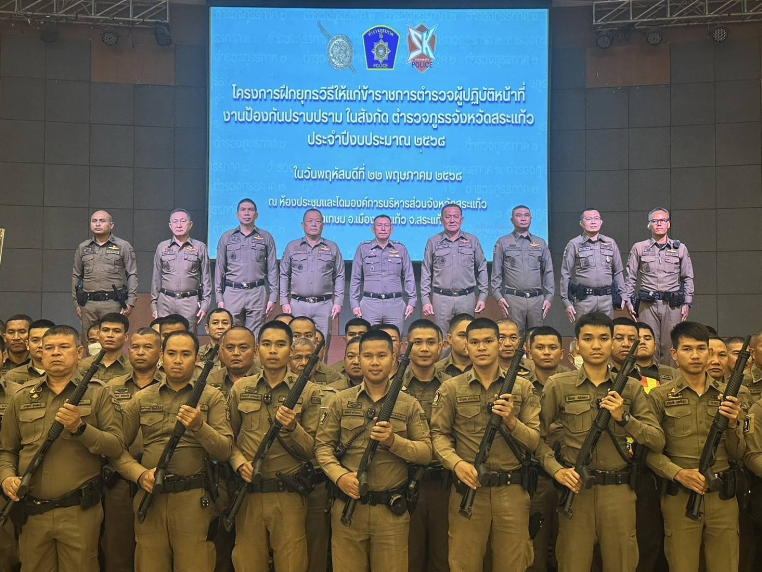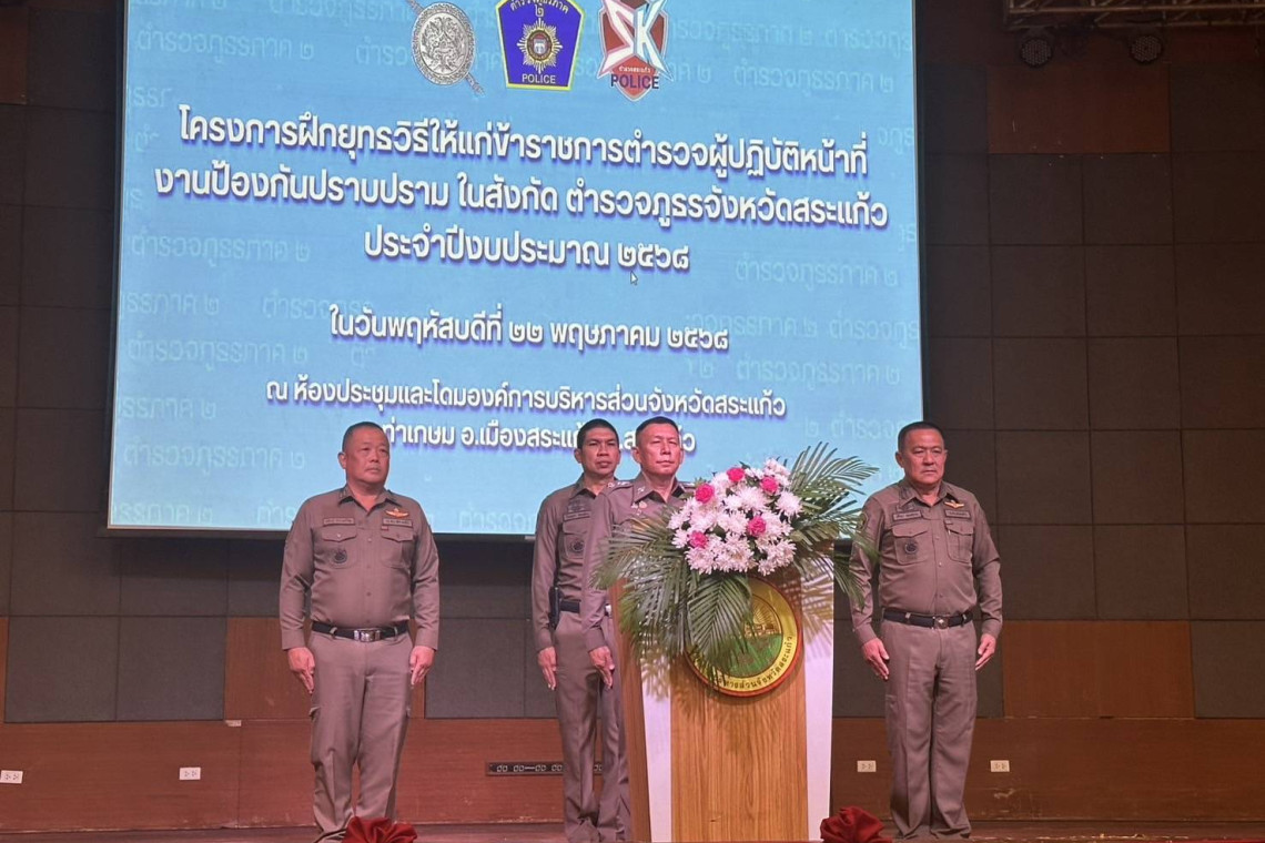 "บิ๊กตั้ม "พล.ต.ต.ถาวร ดุลยวิทย์ ผบก.ภ.จว.สระแก้ว เป็นประธาน เปิดโครงการโครงการฝึกยุทธวิธีการฝึกเข้มงวดตำรวจ ในสังกัดจังหวัดสระแก้ว การฝึกเข้มงวดเพื่อเตรียมความพร้อมในการรับมือกับเหตุการณ์อาชญากรรม ด้วยการฝึกซ้อมยุทธวิธีอย่างต่อเนื่องเพื่อเพิ่มประสิทธิภาพในการเตรียมความพร้อมของตำรวจในการรับมือกับเหตุการณ์ต่างๆ