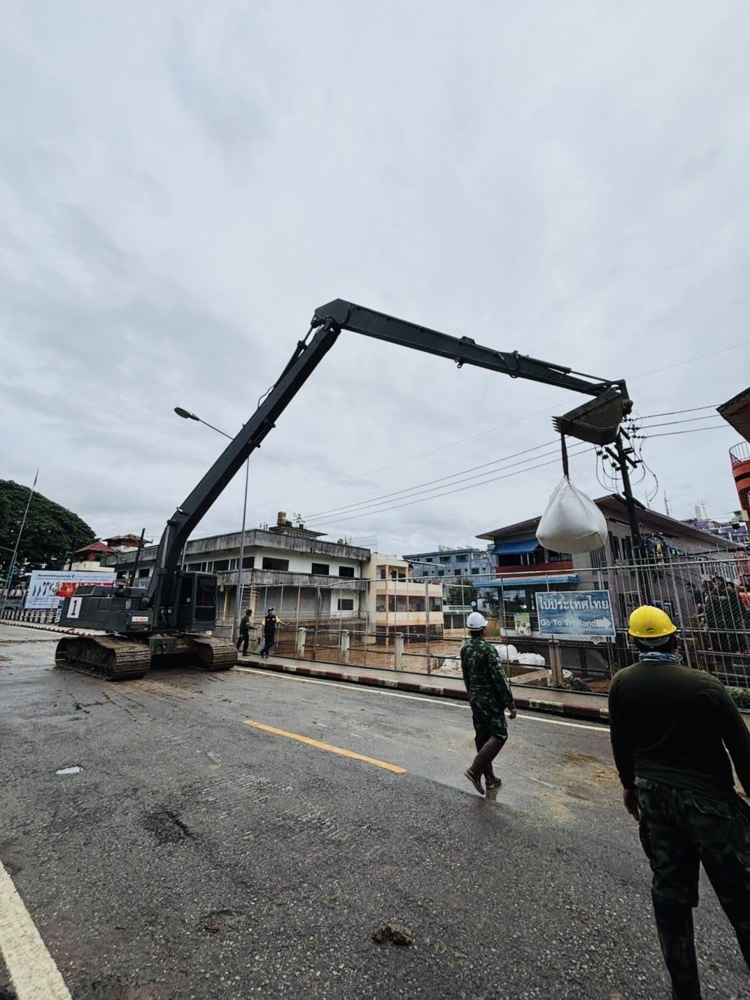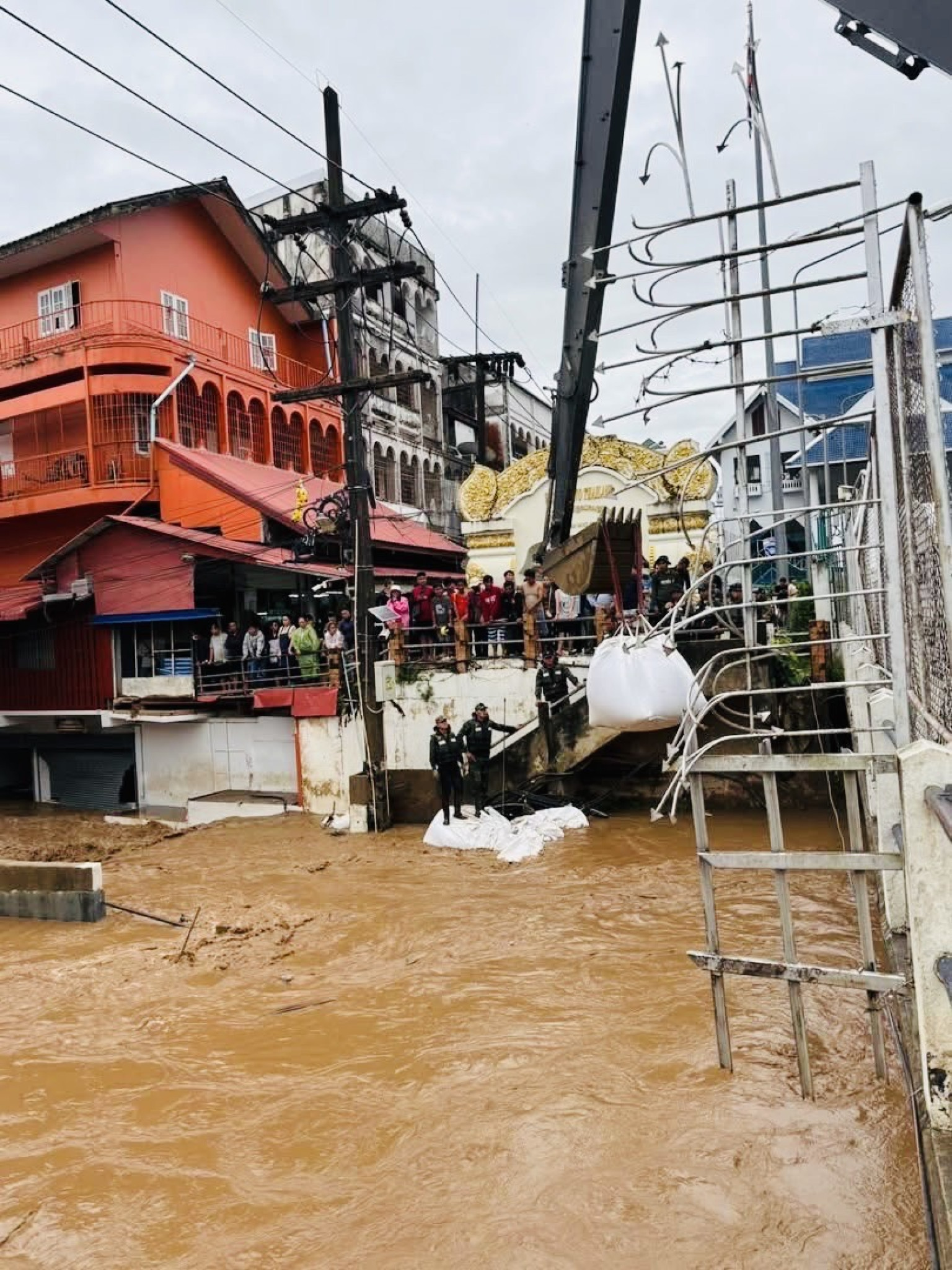 นายวรายุทธ ค่อมบุญ นายอำเภอแม่สาย กล่าวว่า มวลน้ำที่มีมากทำให้ล้นบิ๊กแบ็คขึ้นมาส่งผลให้เข้าท่วมพื้นที่ดังกล่าว และในช่วงน้ำท่วมมีวัชพืชและขอนไม้ไหลมาติดสะพานอีก ขณะที่น้ำที่มีปริาณมากไหลมาเป็นระลอกๆ โดยช่วงเข้ามืดเวลาประมาณ 03.30 น.เป็นระลอกที่ 1 และช่วงเข้าเป็นระลอกที่ 2 ทำให้ต้องเร่งนำเอาวัชพืชและขอนไม้ออกเพื่อให้น้ำไหลระบายได้สะดวก