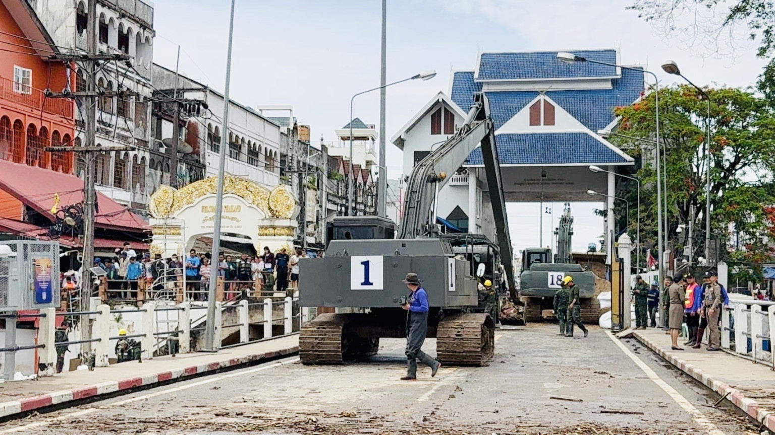 ซึ่งทั้งฝั่ง อ.แม่สาย จ.เชียงราย และ จ.ท่าขี้เหล็ก ประเทศเมียนมา พบว่าระดับยังคงมีสูงโดยเฉพาะบริเวณสะพานมิตรภาพไทย-เมียนมา ข้ามแม่น้ำสายแห่งที่ 1 ซึ่งเป็นจุดผ่านแดนถาวรและใช้สำหรับการข้ามไปมาของผู้คนพบว่ามีเศษวัชพืช กิ่งไม้ต้นไม้ ท่อนซุง ฯลฯ ที่ไหลมาจากเหนือน้ำติดอยู่บริเวณใต้สะพาน ทำให้ทหารช่างนำรถแบคโฮเข้าทำการขุดตักออกแต่เนื่องจากติดอยู่บริเวณกลางสะพานทำให้ต้องเคลื่อนรถไปบริเวณกลางสะพานส่งผลทำให้การเปิดจุดผ่านแดนถาวรแม่สาย-ท่าขี้เหล็ก ซึ่งตามปกติเปิดตั้งแต่เวลา 06.30-18.30 น.ต้องเลื่อนหรือปิดชั่วคราว จนกว่าจะนำสิ่งกีดขวางใต้สะพานออกแล้วเสร็จ ทำให้ช่วงเข้าประชาชนทั้ง 2 ฝั่งประเทศ โดยเฉพาะชาวเมียนมาที่จะข้ามมาฝั่งไทยพากันไปรออยู่บริเวณจุดทำบัตรผ่านแดนชั่วคราวเป็นจำนวนมาก