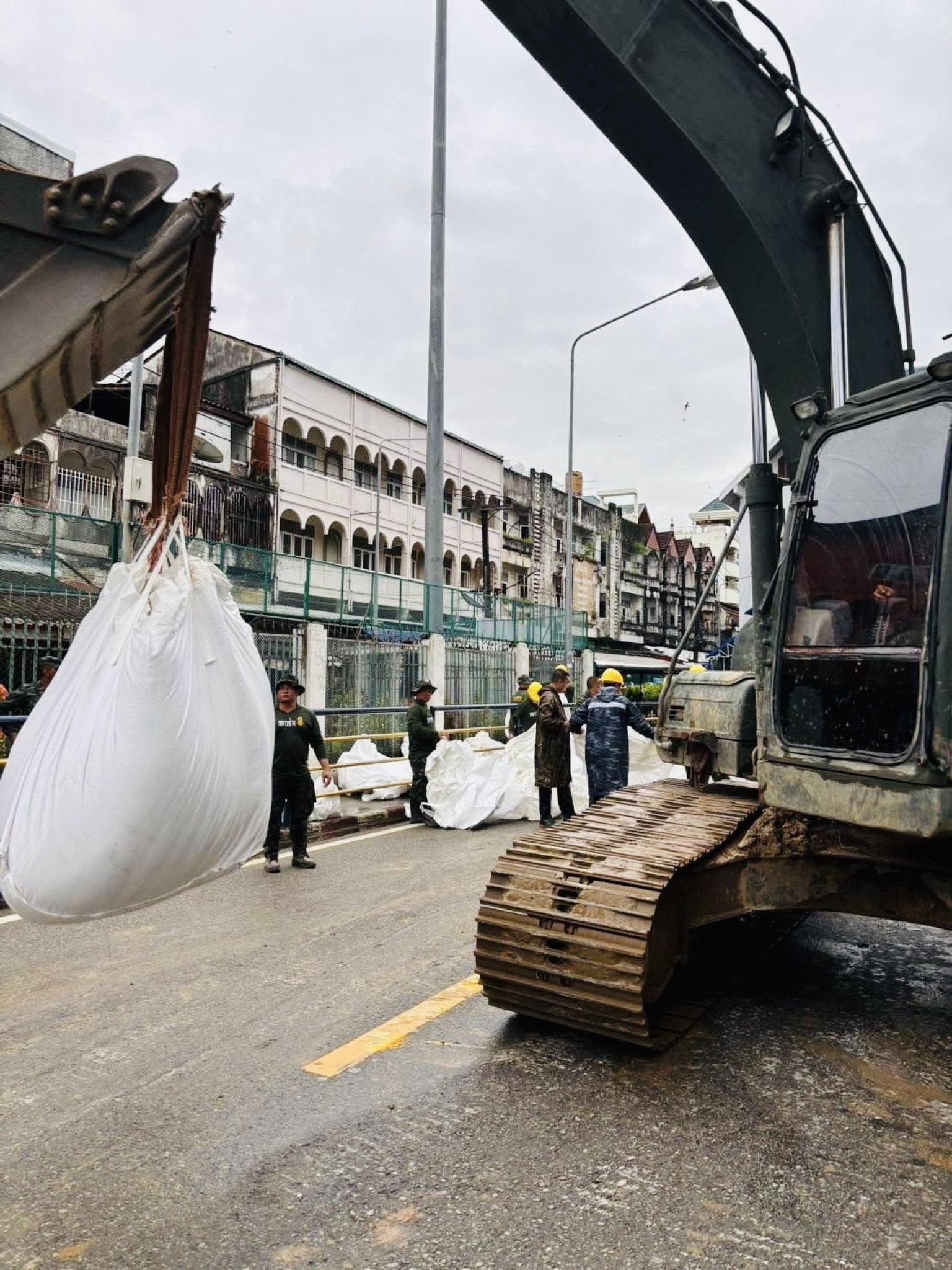 วันที่ 24 พ.ค.2568 ผู้สื่อข่าวรายงาน ว่า หลังจากฝนตกหนักเกือบทั้งคืน ทำให้ระดับน้ำในแม่น้ำสายได้สูงขึ้นจนล้นพนังป้องกัน ทำให้หลายพื้นที่ในอำเภอแม่สาย จังหวัดเชียงราย ถูกน้ำเข้าท่วมบ้านเรือนประชาชนเป็นวงกว้าง ล่าสุดเจ้าหน้าที่ทุกภาคส่วน ทั้งทหาร ฝ่ายปกครองจังหวัด ท้องที่ ท้องถิ่น ปภ. ฯลฯ เร่งระดมกำลังคน และเครื่องจักร เข้าช่วยเหลือประชาชนเป็นการเร่งด่วนแล้ว
