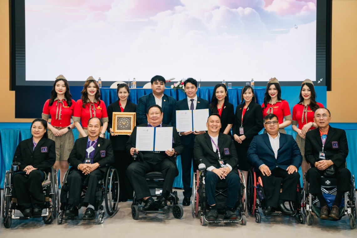 เวียตเจ็ทไทยแลนด์ นำโดยนายปิ่นยศ พิบูลสงคราม รองประธานฝ่ายการพาณิชย์และลูกค้าสัมพันธ์ ได้ลงนามในบันทึกข้อตกลงความร่วมมือ (MoU) กับสมาคมคนพิการแห่งประเทศไทย โดยมีนายศุภชีพ ดิษเทศ นายกสมาคมฯ ร่วมลงนามในพิธี ซึ่งจัดขึ้นเมื่อวันที่ 23 พฤษภาคม 2568 ณ ห้องประชุมโรงแรมเอเชีย แอร์พอร์ท รังสิต จังหวัดปทุมธานี ระหว่างการประชุมสัมมนาเชิงปฏิบัติการและการระดมความคิดเห็นเพื่อแก้ไขปัญหาด้านสิทธิของผู้พิการ ความร่วมมือนี้สะท้อนถึงความตั้งใจของเวียตเจ็ทไทยแลนด์ในการส่งเสริมความเท่าเทียม เคารพในศักดิ์ศรี มอบโอกาสในการทำงาน และให้บริการอย่างใส่ใจแก่ผู้โดยสารที่มีความพิการอย่างแท้จริง