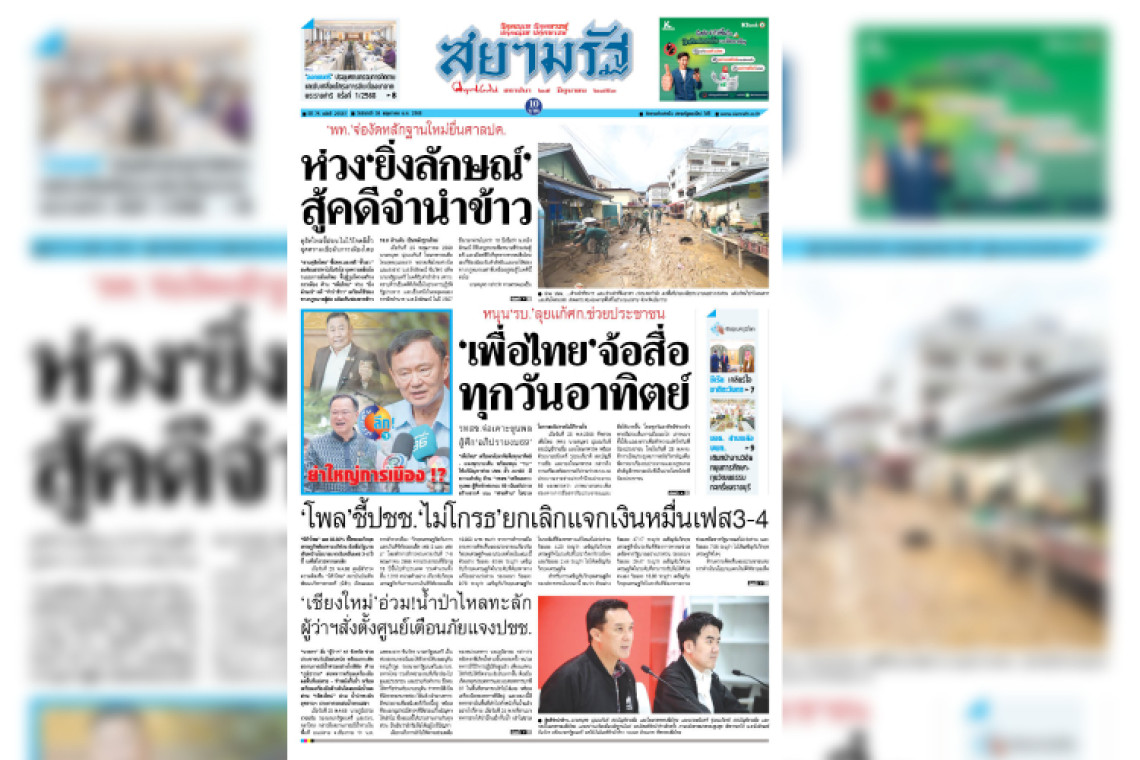 หน้า 1 หนังสือพิมพ์สยามรัฐรายวัน ฉบับวันจันทร์ที่ 26/05/68