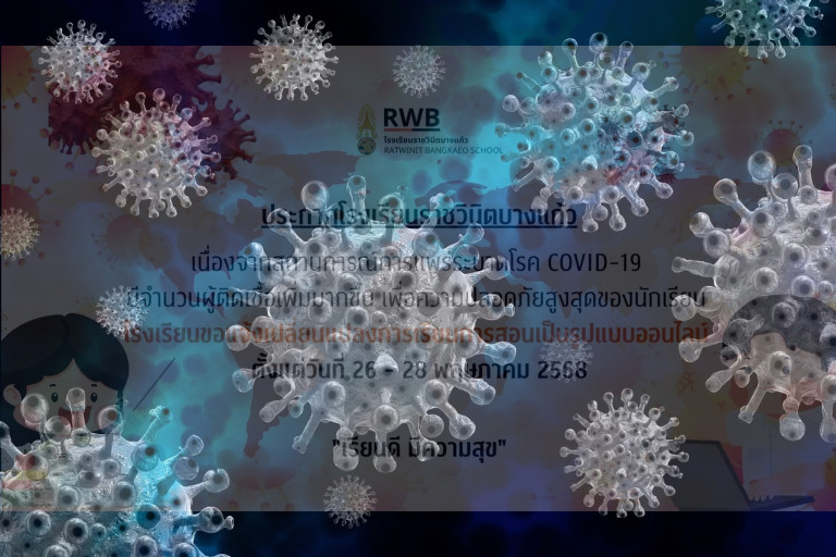 เนื่องจากสถานการณ์การแพร่ระบาดโรค COVID-19 มีจำนวนผู้ติดเชื้อเพิ่มมากขึ้น เพื่อความปลอดภัยสูงสุดของนักเรียน โรงเรียนขอแจ้งเปลี่ยนแปลงการเรียนการสอนเป็นรูปแบบออนไลน์ ตั้งแต่วันที่ 26 - 28 พฤษภาคม 2568