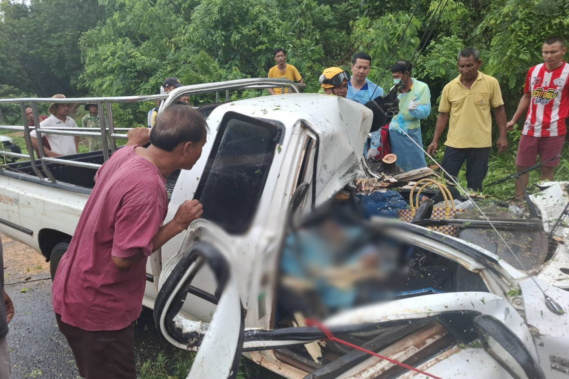 ทราบชื่อผู้เสียชีวิตคือ นายสุพจน์ อายุ 54 ปี (บิดา)และนางทองเลข อายุ 49 ปี (ภรรยา)ผู้บาดเจ็บคือนางสาวศิริรัตน์ อายุ 17 ปี (บุตร) อยู่บ้านเลขที่ 117 หมู่ที่ 4 ตำบลร่มเกล้า อำเภอนิคมคำสร้อย จังหวัดมุกดาหาร ซึ่งบุคคลทั้ง 3 เป็นคนในครอบครัวเดียวกันได้เดินทางออกมาจากบ้านเพื่อจะไปทำธุระที่ตัวอำเภอนิคมคำสร้อย จังหวัดมุกดาหาร แต่ขณะขับรถยนต์กระบะออกมาเกิดเหตุต้นไม้ริมถนนโค่นหักทับเสียชีวิตและบาทเจ็บดังกล่าว