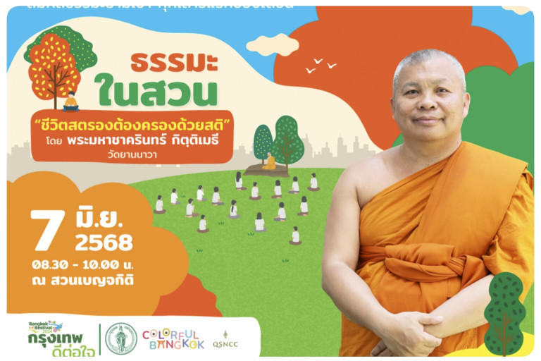 พร้อมร่วมสนทนาธรรม ในมุมมองของคนรุ่นใหม่ ท่ามกลางธรรมชาติยามเช้า ในวันเสาร์แรกของเดือนมิถุนายน กับกิจกรรม “ธรรมะในสวน” หัวข้อ “ชีวิตสตรองต้องครองด้วยสติ” โดย พระมหาชาครินทร์ กิตฺติเมธี วัดยานนาวา (พระอารามหลวง) เวลา 8.30-10.00 น.ณ อาคารโรงงานผลิตยาสูบ 5 สวนเบญจกิติ