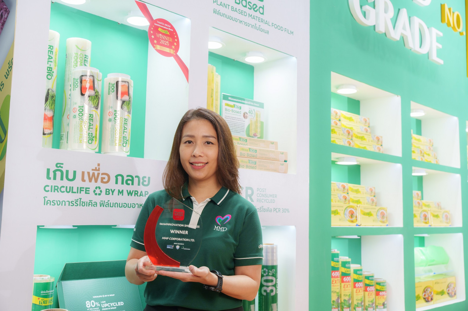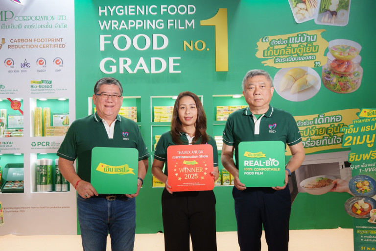 ทั้งนี้ M Wrap® Real Bio 100% Compostable Food Film คว้ารางวัล tasteInnovation Show Winners ในงาน THAIFEX – Anuga Asia 2025  เป็น 1 ใน 10 ที่ได้รับการคัดเลือกจากผลิตภัณฑ์กว่า 800 รายการ ด้วยโซลูชันที่ล้ำสมัย พิจารณาจากความคิดสร้างสรรค์ และนวัตกรรมในเทรนด์สำคัญของอุตสาหกรรมอาหารและเครื่องดื่ม รวมถึงด้านความยั่งยืน (sustainability) เป็นบรรจุภัณฑ์เพื่อสิ่งแวดล้อม  M Wrap® Real Bio โดดเด่นในฐานะฟิล์มถนอมอาหารที่ผลิตจากวัสดุชีวภาพ 100% ย่อยสลายได้ตามธรรมชาติ ไม่ทิ้งสารตกค้างต่อสิ่งแวดล้อม ถือเป็นนวัตกรรมบรรจุภัณฑ์รักษ์โลกที่ตอบโจทย์ความต้องการของผู้บริโภครุ่นใหม่ที่ใส่ใจทั้งคุณภาพชีวิต และสิ่งแวดล้อม