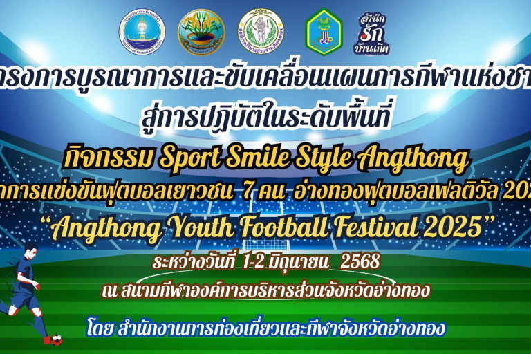 นางสาวลฎาภา ช่วยพิทักษ์ ท่องเที่ยวและกีฬาจังหวัดอ่างทอง  กล่าวว่า สำนักงานการท่องเที่ยวและกีฬาจังหวัดอ่างทอง ดำเนินโครงการบูรณาการและขับเคลื่อนแผนพัฒนาการกีฬาแห่งชาติสู่การปฏิบัติในระดับ พื้นที่ จังหวัดอ่างทอง ประจำปีงบประมาณ พ.ศ. 2568 โดยได้รับการสนับสนุนงบประมาณจากสำนักงานปลัดกระทรวงการท่องเที่ยวและกีฬา มีวัตถุประสงค์เพื่อส่งเสริมและสนับสนุนการจัด กิจกรรมการออกกำลังกายและเล่นกีฬาอย่างสม่ำเสมอ สนับสนุนให้ประชาชนทุกกลุ่มมีการออกกำลังกาย และเล่นกีฬาให้เป็นวิถีชีวิตการดำเนินงานโครงการฯ โดยจัดกิจกรรมการแข่งขันฟุตบอล 7 คนอายุ 10 ปีและ 16 ปี การแข่งขันฟุตบอลดาราการกุศลระหว่าง วีไอพีอ่างทองนำโดยนายทัศนัย สุธาพจน์ เป็นรองผู้ว่าราชการจังหวัดอ่างทอง พบกับทีมดาราเพื่อนโจอี้ กาน่า หนูมิเตอร์ และเหล่าดารา การจัดเทศกาลอาหาร&ลานดนตรี@อ่างทอง ซึ่งมีร้านค้าเข้าร่วมกว่า 50 ร้าน ทีมฟุตบอลเยาวชนกว่า 36 ทีม จากจังหวัด อ่างทอง ลพบุรี สุพรรณบุรี กาญจนบุรี สิงห์บุรี ตราด กรุงเทพมหานคร ชัยนาท และอยุธยา ซึ่งเป็นการสร้างรายได้ให้กับจังหวัดอ่างทอง และเป็นการสร้างนักฟุตบอลเยาวชนให้มีการรักในการออดกำลังกายเพื่อเป็นอนาคตของชาติต่อไป
