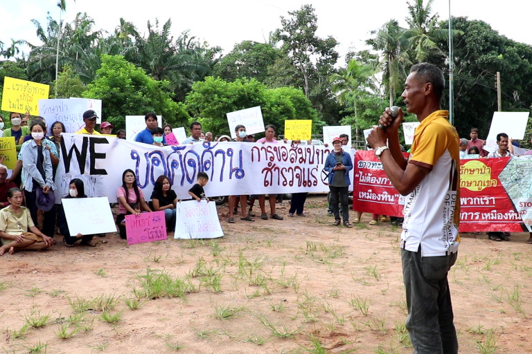 ขณะที่นายสุรพล ชาวบ้านตำบลทะเลทรัพย์ ถือหนังสือสำนักงานอุตสาหกรรมจังหวัดชุมพร ที่ ชพ 0034(4)/ 448 ลงวันที่ 23 เมษายน 2568  กล่าวต่อหน้าชาวบ้านผู้คัดค้านเหมืองแร่ฯ ระบุเรื่องคำขออาชญาบัตรผูกขาดสำรวจแร่ที่ 1/2566 ของบริษัท ภูทองอันดา จำกัด ขอสำรวจแร่หินอุตสาหกรรมชนิดหินปูนเพื่ออุตสาหกรรมก่อสร้าง ที่ตำบลทะเลทรัพย์อ.ปะทิว เนื้อที่ 1,250 ไร่ ถึง นายกเทศมนตรีตำบลทะเลทรัพย์  อุตสาหกรรมจังหวัดชุมพร พิจารณาแล้วเห็นว่า  เรื่องดังกล่าวได้ผ่านมาเป็นระยะเวลานานแล้ว จึงสอบถามมายังนายกเทศมนตรีตำบลทะเลทรัพย์มีความคิดเห็นอย่างไร ผลประการใดแจ้งให้ทางสำนักงานฯทราบด้วย