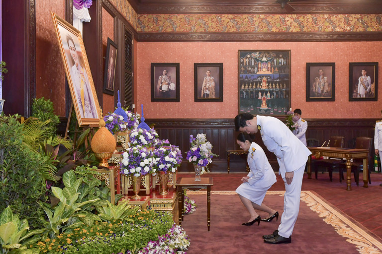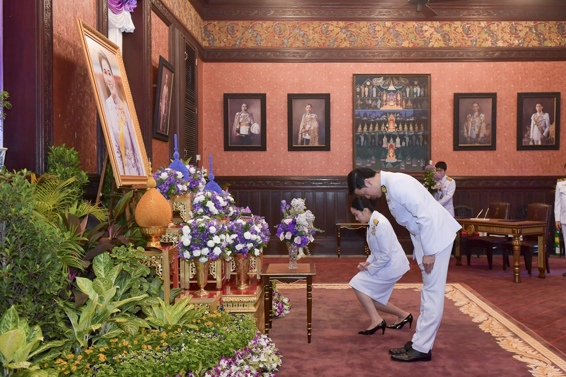 โอกาสนี้ นายกรัฐมนตรีและคู่สมรส ทูลเกล้าฯ ถวายแจกันดอกไม้เบื้องหน้าพระฉายาลักษณ์สมเด็จพระนางเจ้าฯ พระบรมราชินี ดังนี้