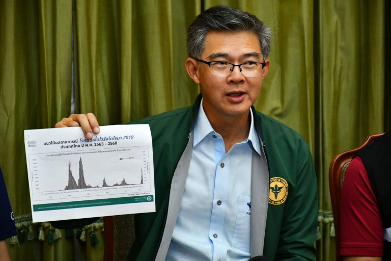 เมื่อวันที่ 3 มิ.ย.68 นพ.ทวีศิลป์ วิษณุโยธิน อธิบดีกรมการแพทย์ พร้อมด้วย นพ.สกานต์ บุนนาค รองอธิบดีกรมการแพทย์ และ นพ.สุทัศน์ โชตนะพันธ์ รองอธิบดีกรมควบคุมโรค แถลงข่าวสถานการณ์โรคโควิด 19 และแนวทางการรักษา โดย นพ.ทวีศิลป์กล่าวว่า นายสมศักดิ์ เทพสุทิน รัฐมนตรีว่าการกระทรวงสาธารณสุข มีความห่วงใยสถานการณ์โรคโควิด 19 ที่มีแนวโน้มผู้ป่วยเพิ่มขึ้น จากฤดูฝนที่มาเร็วขึ้นและมีการเปิดภาคเรียน อีกทั้งยังเป็นช่วงที่พบการระบาดของโรคไข้หวัดใหญ่ที่มีอาการคล้ายกัน จึงให้สื่อสารแนวทางปฏิบัติตัวกับประชาชนเพื่อให้มีการป้องกันตนเองมากขึ้น เนื่องจากขณะนี้ประชาชนส่วนหนึ่งเริ่มผ่อนคลายการป้องกันตนเอง ซึ่งหากทุกคนร่วมมือกันปฏิบัติตัวเพื่อช่วยลดการแพร่เชื้อก็จะทำให้จำนวนผู้ป่วยลดลงมาได้ สำหรับผู้เสียชีวิตในปี 2568 นี้มี 69 ราย ส่วนใหญ่ยังเป็นกลุ่ม 608 ที่เป็นผู้สูงอายุและมีโรคประจำตัว และอยู่ในเมืองใหญ่ที่มีคนจำนวนมากหรือเป็นเมืองท่องเที่ยว คือ กทม. 22 ราย ชลบุรี 8 ราย จันทบุรี 7 ราย เชียงใหม่ 3 ราย เป็นต้น อัตราการเสียชีวิตไม่ได้เพิ่มขึ้นอยู่ที่ 0.106 ต่อประชากรแสนคน สะท้อนว่าโรคไม่ได้มีความรุนแรงมากขึ้น