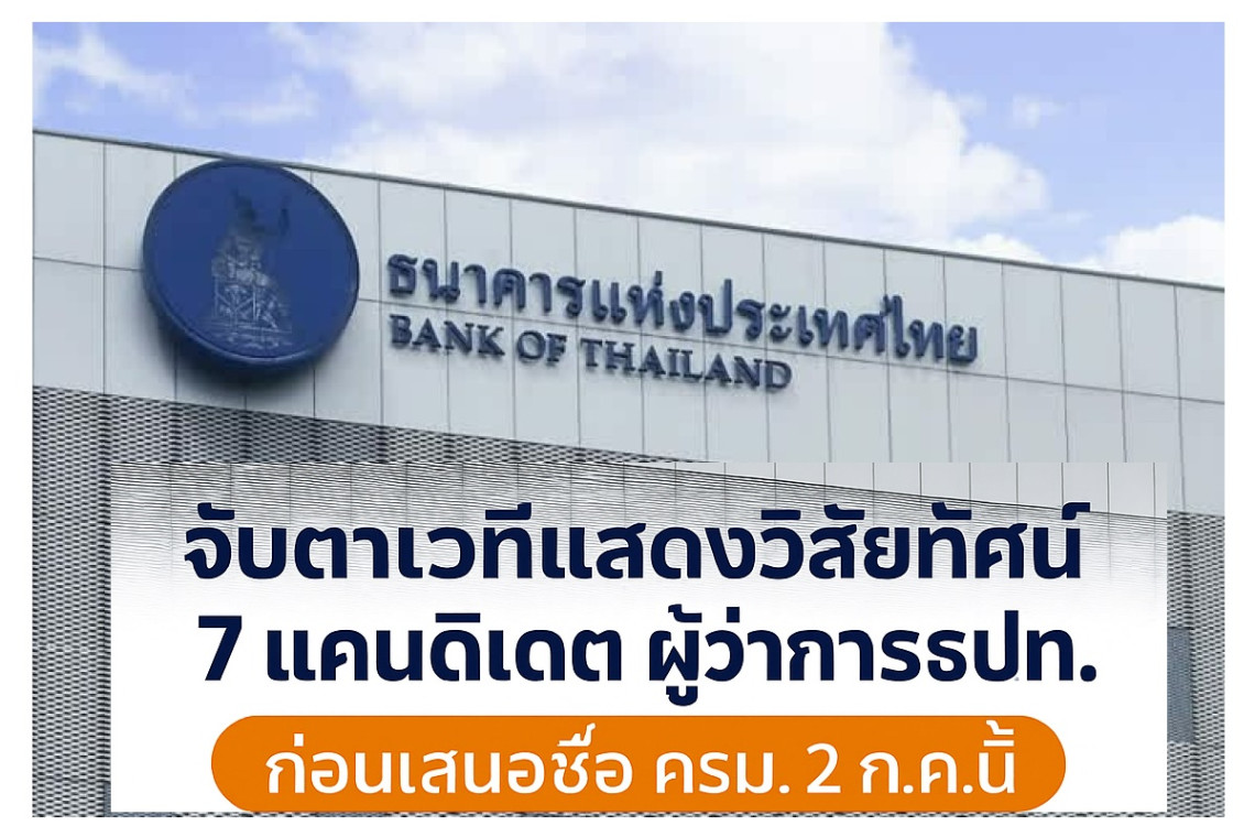 7 ผู้สมัครผู้ว่าการแบงก์ชาติ เตรียมแสดงวิสัยทัศน์ 24 มิ.ย.ก่อนเสนอชื่อ ครม.ภายใน 2 ก.ค.นี้
