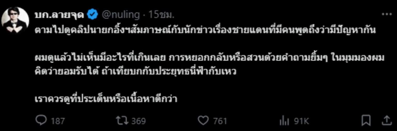 วันที่ 5 มิ.ย.68 "บก.ลายจุด" สมบัติ บุญงามอนงค์ ทวีตข้อความผ่านแอปพลิเคชั่น X (ทวิตเตอร์) @nuling ระบุว่า...