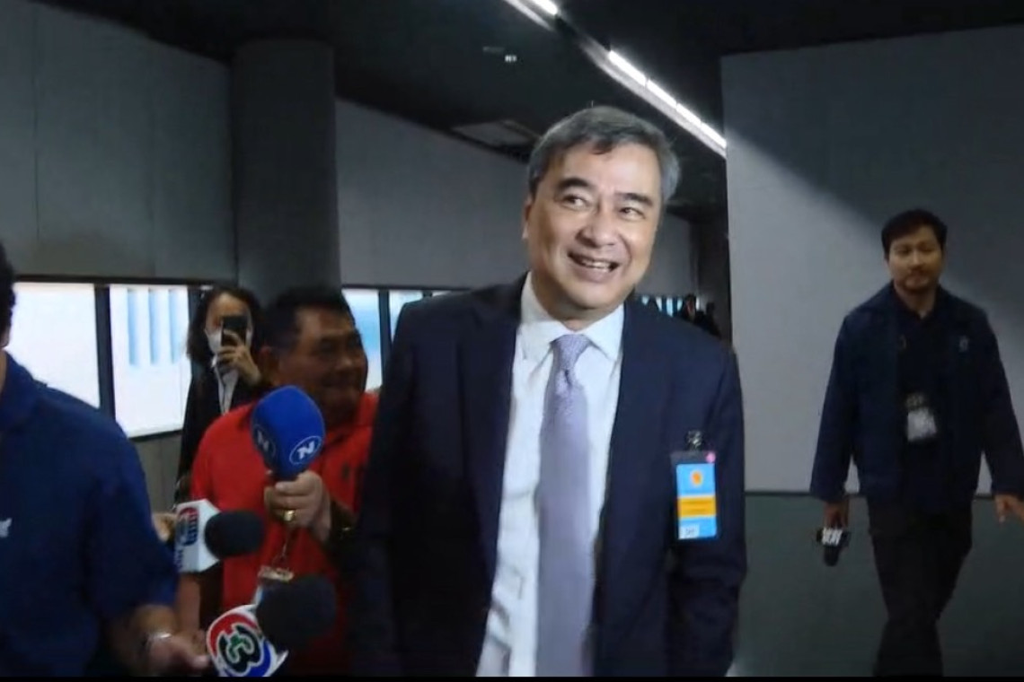 วันที่ 5 มิ.ย.2568 ที่รัฐสภา นายอภิสิทธิ์ เวชชาชีวะ อดีตนายกรัฐมนตรี ภายหลังชี้แจงต่อคณะกรรมาธิการวิสามัญพิจารณาศึกษาการเปิดสถานบันเทิงแบบครบวงจร (Entertainment Complex) วุฒิเสภา ผู้สื่อข่าวประจำรัฐสภา ได้เข้าไปสอบถามนายอภิสิทธิ์ เรื่องสถานการณ์ชายแดนไทย กัมพูชา ที่กำลังเป็นประเด็นร้อน แต่นายอภิสิทธิ์บ่ายเบี่ยงที่จะตอบคำถาม และพูดติดตลกแซวช่างภาพว่า “การเดินถอยหลังของช่างภาพเป็นการออกกำลัง ได้ฝึกกำลังขาและสมองด้วย”